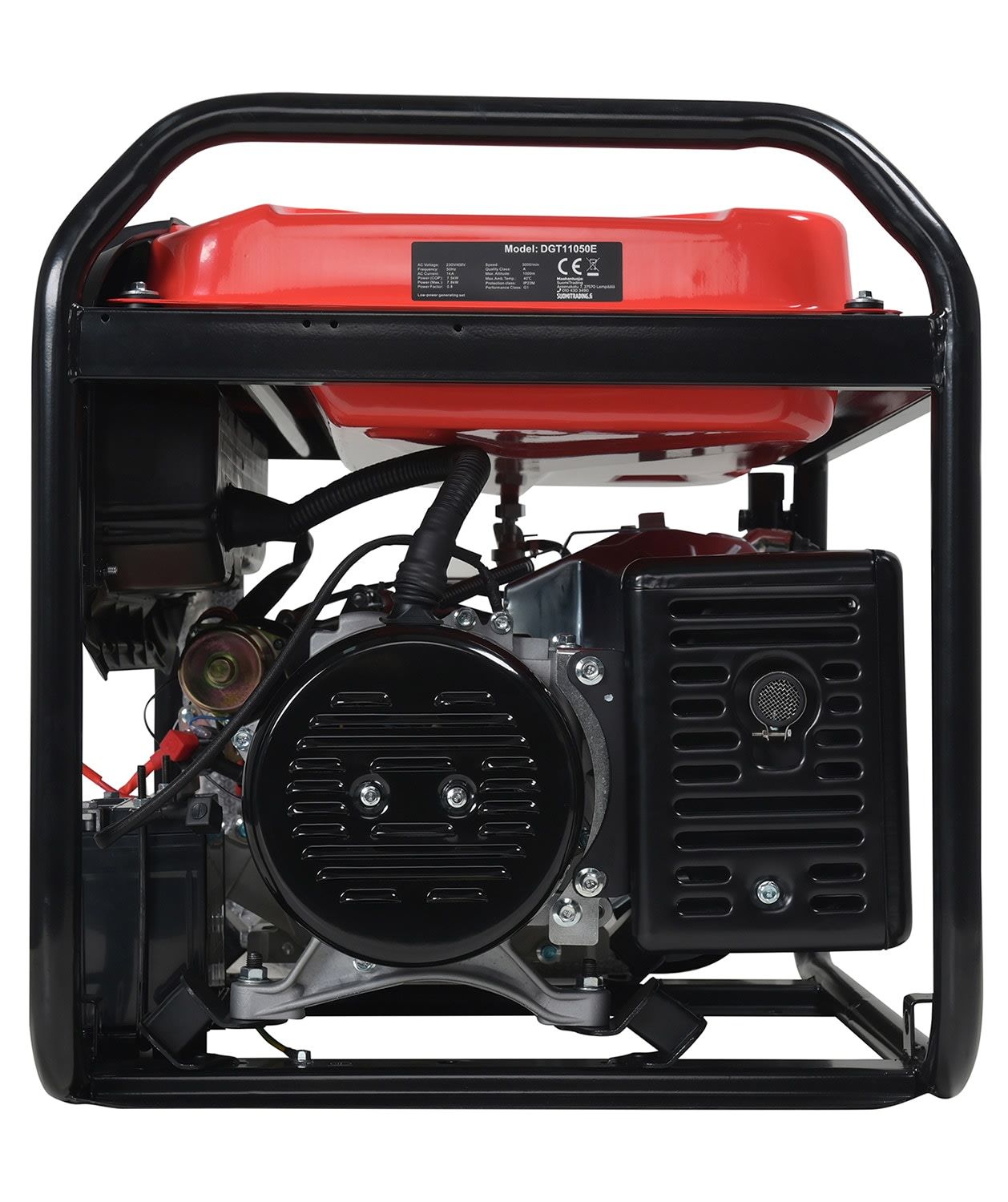 Voimavirta ulostulolla ja sähköstartilla varustettu Ducar bensiinikäyttöinen generaattori renkailla ja kahvalla tuo sekä valovirran että voimavirran sinne, missä sitä tarvitsee.
