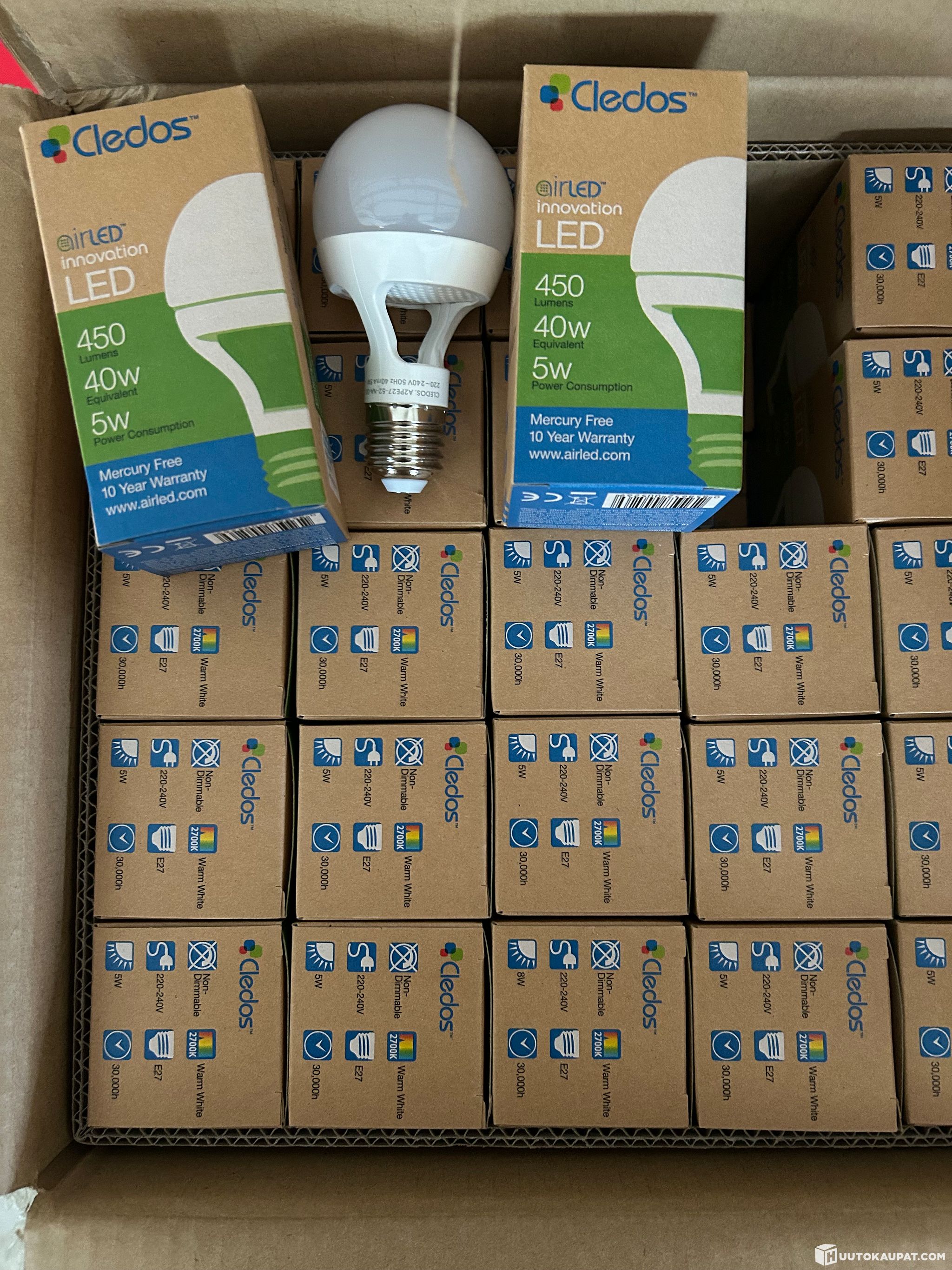 50kpl myyntierä todella laadukkaita Cledos irLed 5W ledilamppuja E27 kannalla .