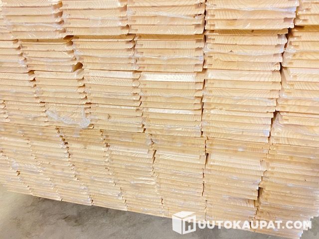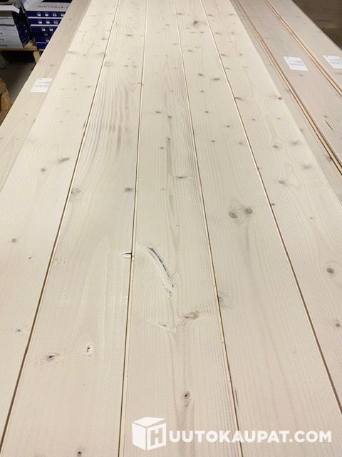 Valkolakattu kuusipaneeli 14x120x2370mm STS4, päätypontattu. Talouslaatu.
