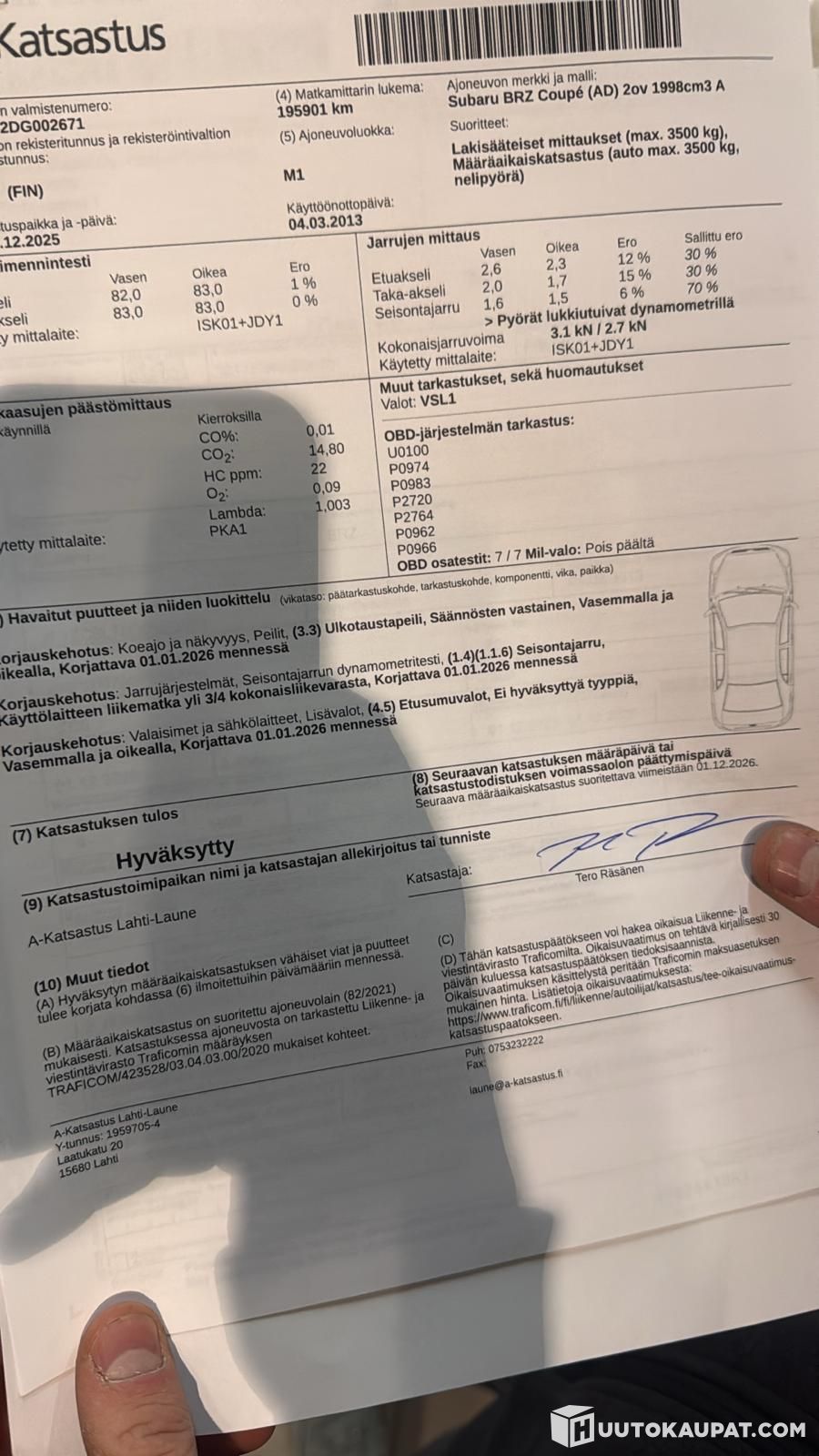 Katsastuksessa tullut korjauskehoituksia 3kpl. kts kuvat.