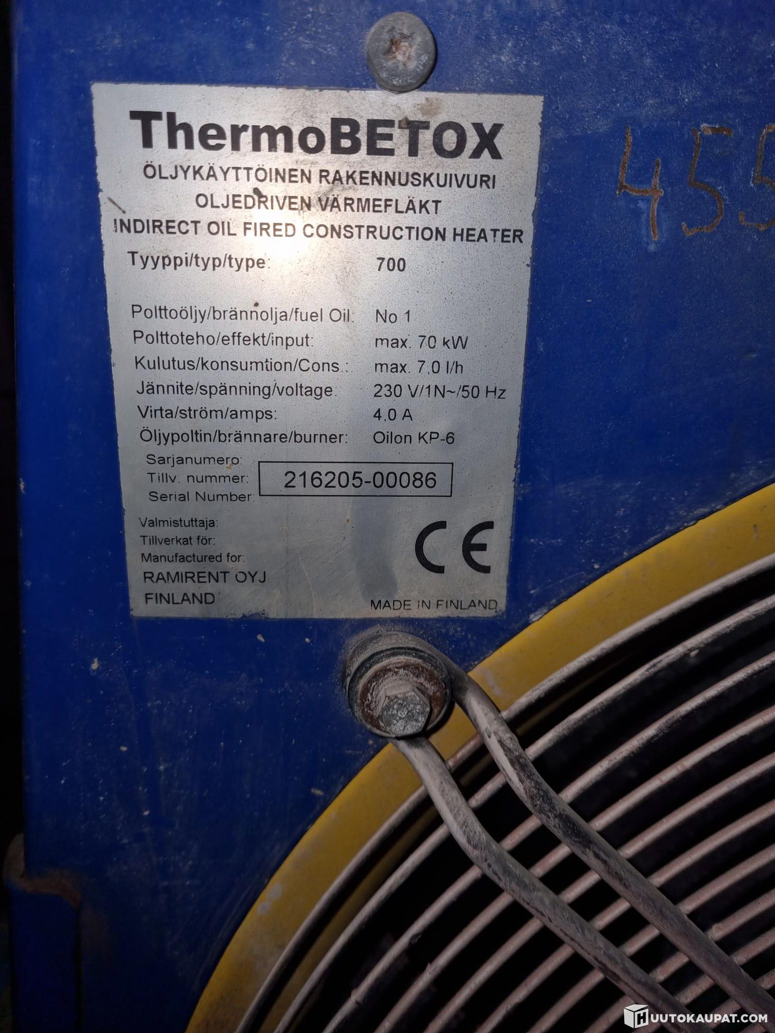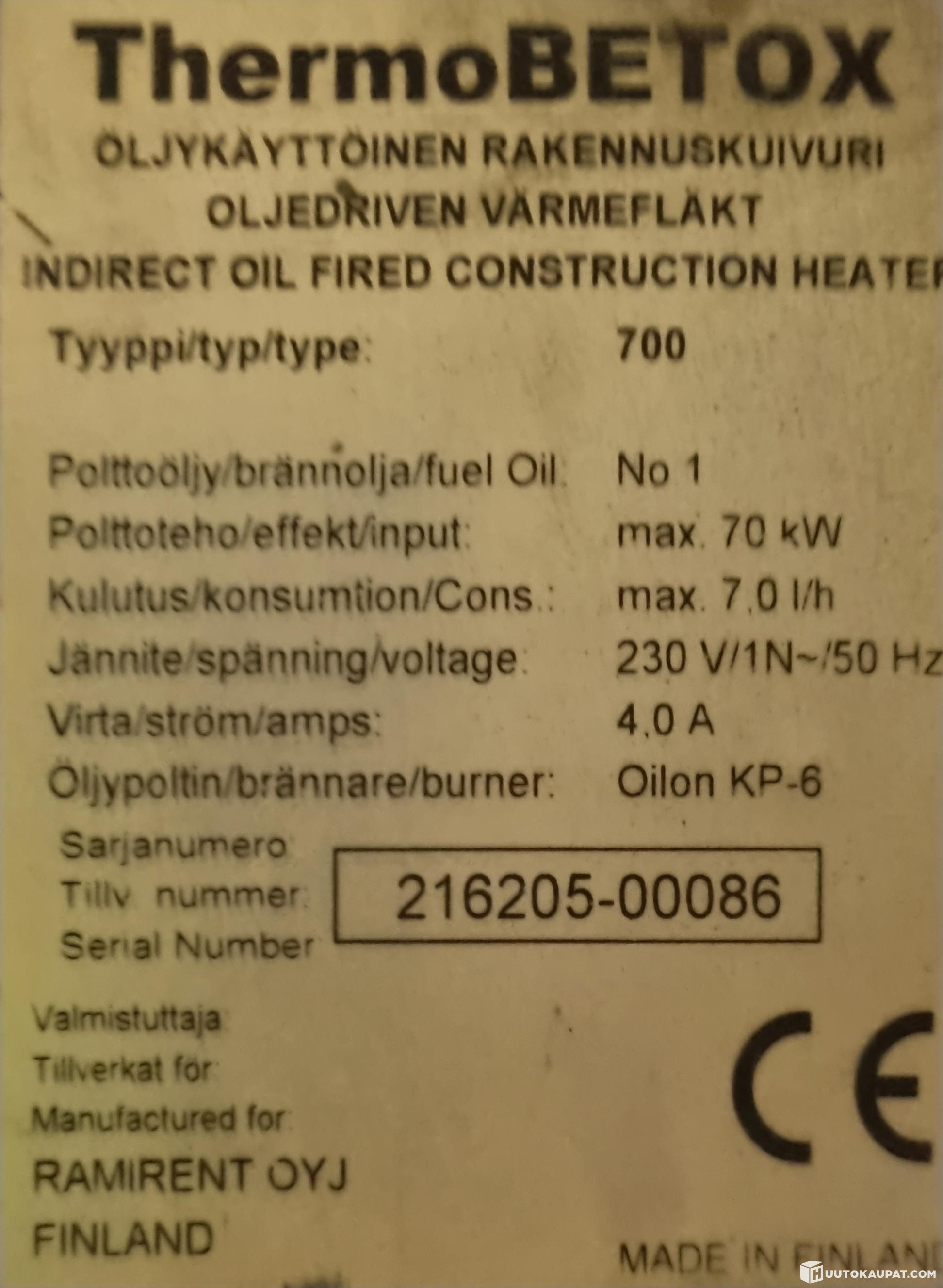 Betox Thermo 70 KW öljykäyttöinen rakennuskuivuri Type 700. Testattiin ja toimii!