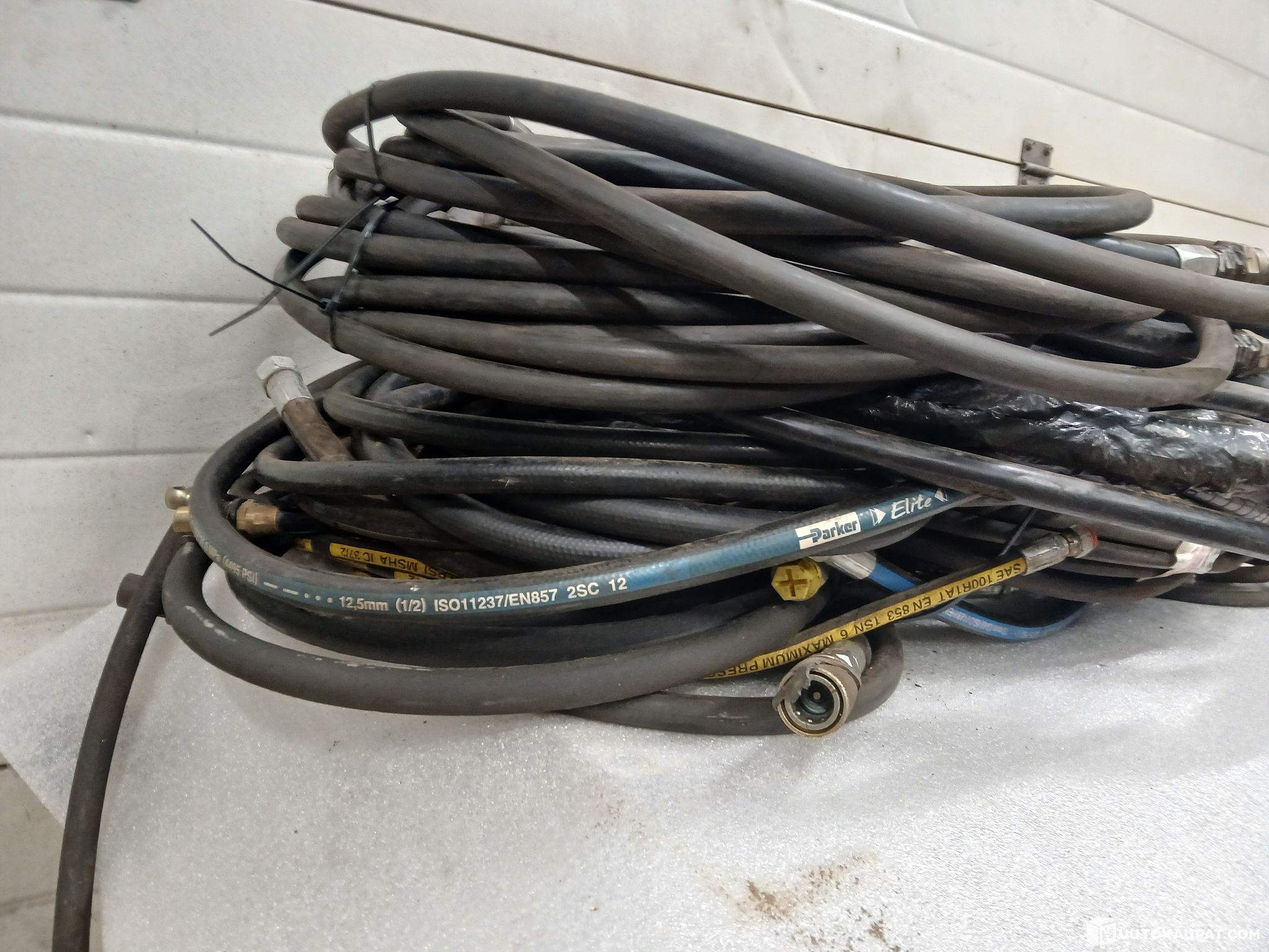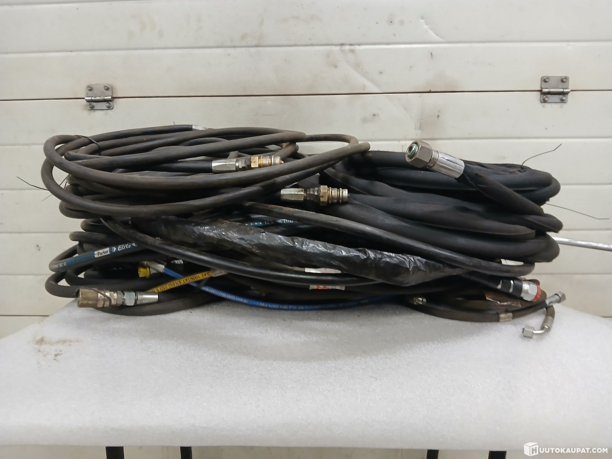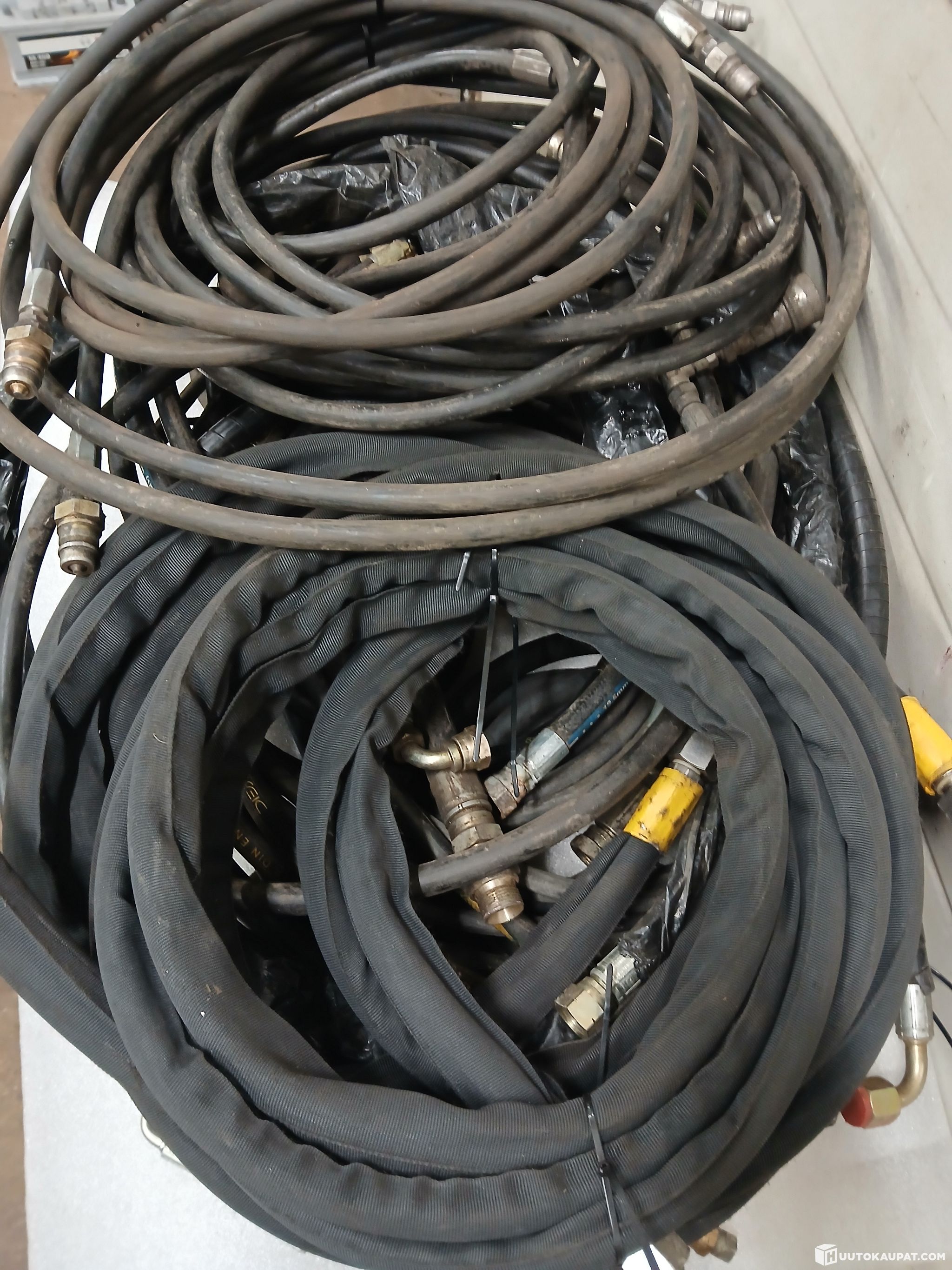 Kuvien erä hydrauliikkaletkuja.mukana 2 kappaletta 7 metrin suojattua letkua.lisäksi 2 kappaletta 10 metrin letkua.lisäksi monen laisia muitakin letkuja.erälle saadaan tarvittaessa järjestettyä kuljetus koko suomen alueella kotipihaan asti toimitettuna.noudettaessa kohdetta saadaan noutoajankohta järjestymään joustavasti myös iltaisin ja viikonloppuisinkin.noudosta ei peritä mitään noutomaksuja/noutokuluja.noudolla ei myöskään ole kiirettä saadaan sovittua todella joustavasti tarvittaessa.