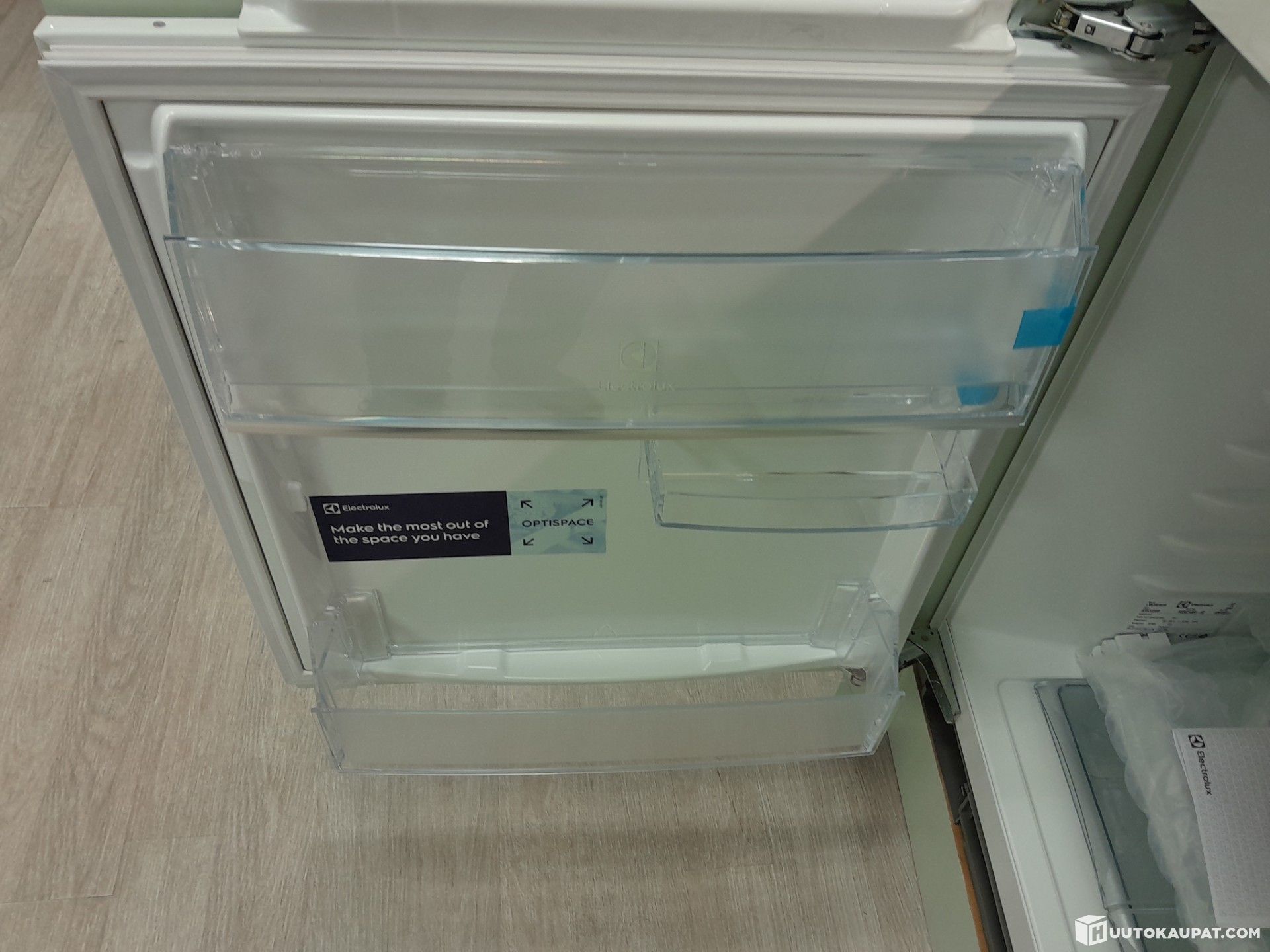Turvalasihyllyt. OptiSpace-jääkaappi tarjoaa maksimaalisen säilytystilan perheen tarpeisiin. Jääkaapissa on kestävät turvalasihyllyt, joiden korkeutta voi säätää tarpeiden mukaan. Mahdolliset roiskeet vodaan myös puhdistaa helposti kostealla liinalla.