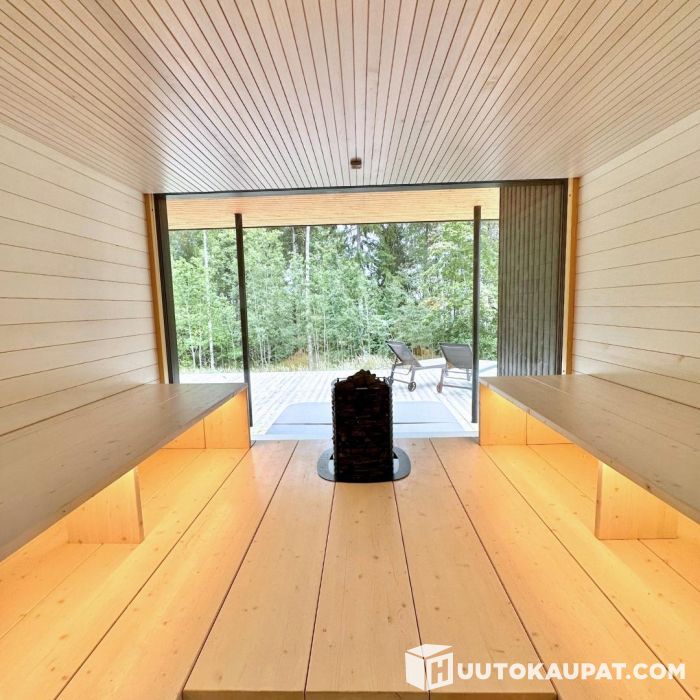 Pihkattomana ja hitaasti lämpöä johtavana materiaalina haapa on täydellinen valinta saunaan, jossa pintojen tuntuma on ensisijaisen tärkeää. KUULAS-paneelin ansiosta saunassa on mukava istua vielä hieman pidempään.