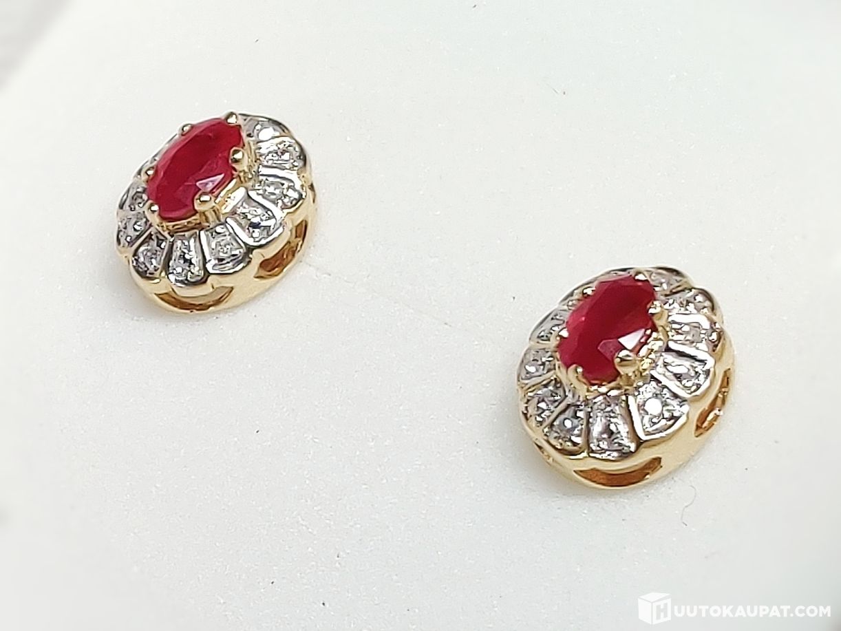 Kultaiset timantti-rubiinikorvakorut 585 14k, Mikkeli