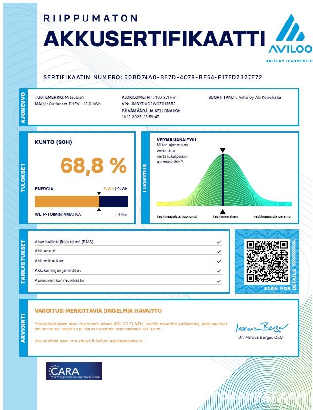 Auto ei ole ollut toimestamme teknisessä kuntotarkastuksessa eikä kaikkien varusteiden toimivuutta ole testattu. Siinä saattaa olla piileviä vikoja, joita koeajolla emme havainneet. Autoon on mahdollista tulla tutustumaan tarkemmin ennen sitovan huudon tekemistä. Sovithan tulostasi etukäteen, kiitos.