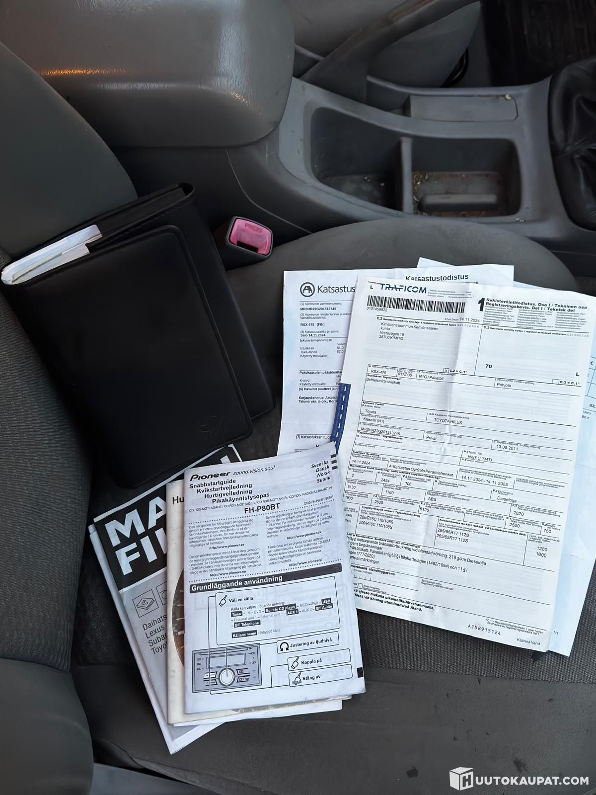 Tarjolla Toyota Hilux, joka on rakennettu kiinteistönhoitokäyttöön. Auto myydään korjattavaksi nykykunnossaan, eikä se ole tieliikennekelpoinen.