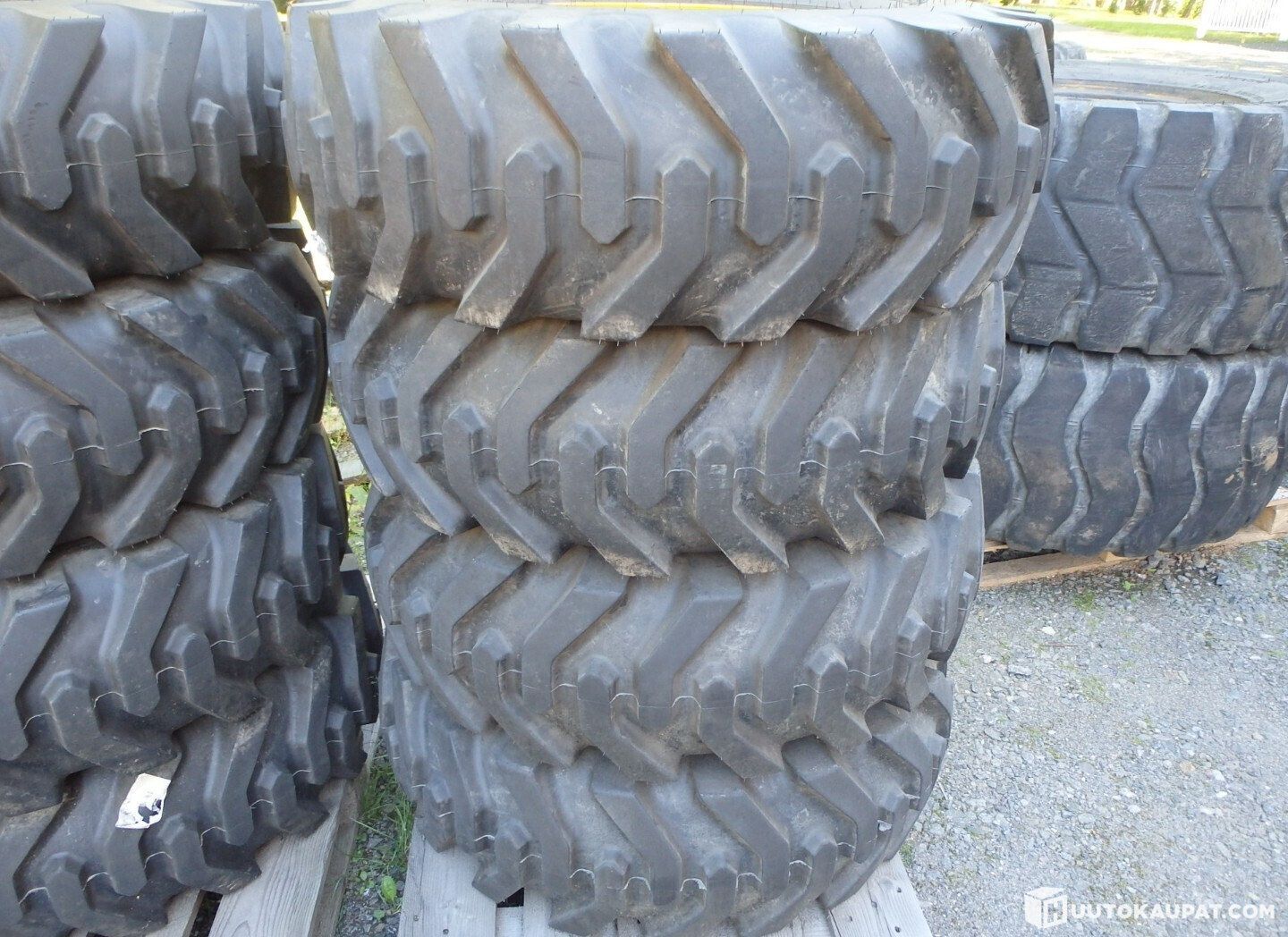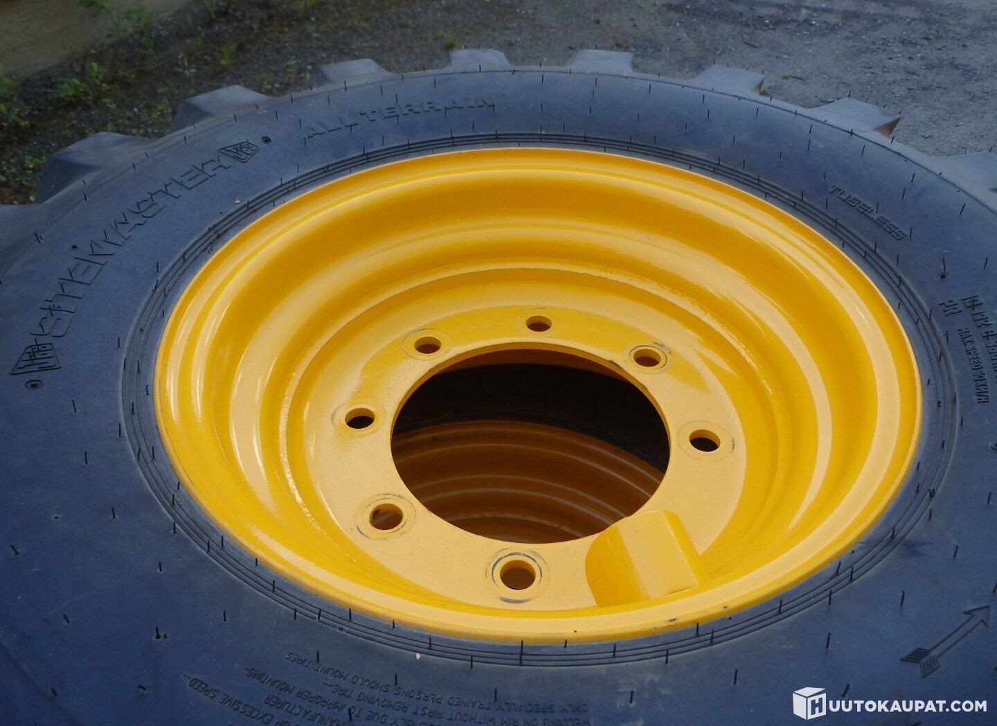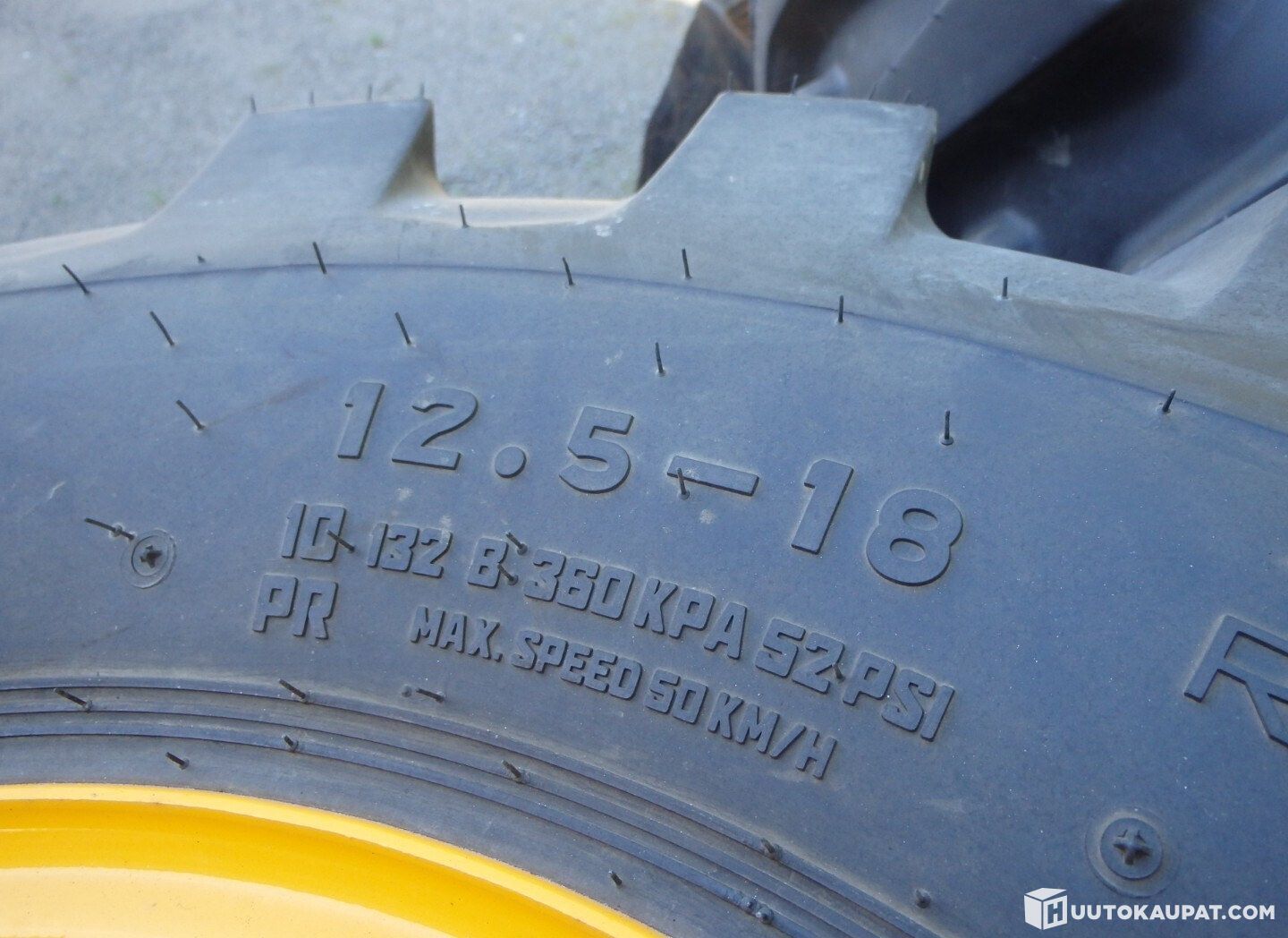 Uusi rengasarja 12.5-18 traktorikuviolla. Kahdeksanpulttiset vanteet, keskireikä 220 mm, keskimmäisten pulttien väli noin 255 mm, sopii esim Kramer, JCB, Komatsu. Nopeusluokka 50 km/h