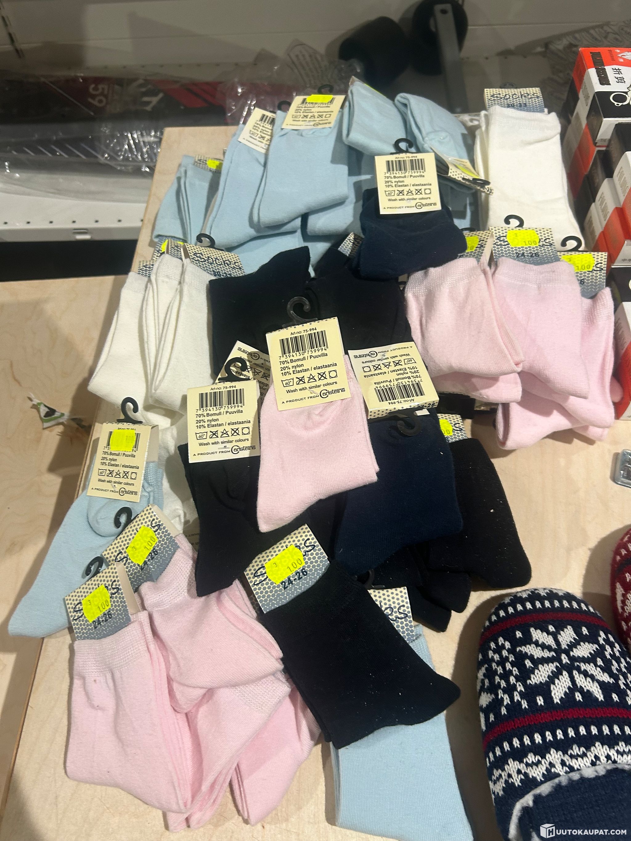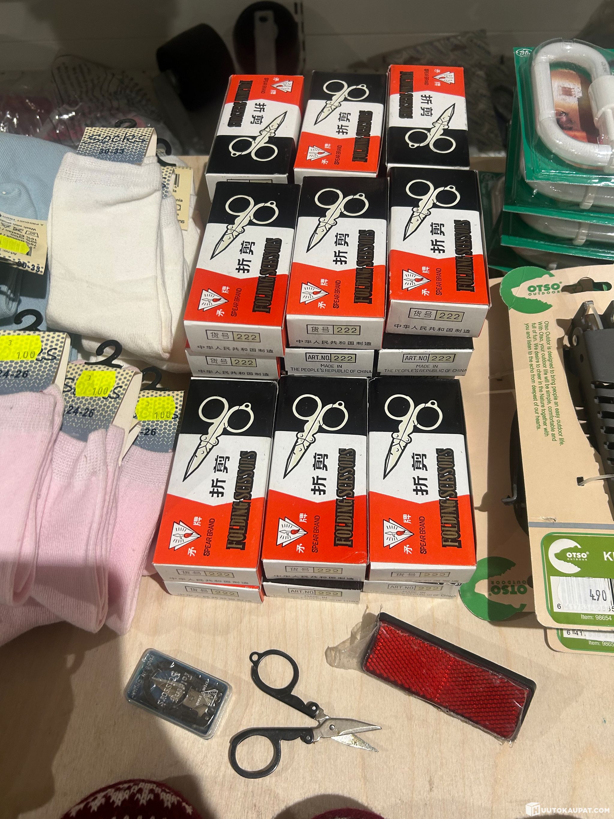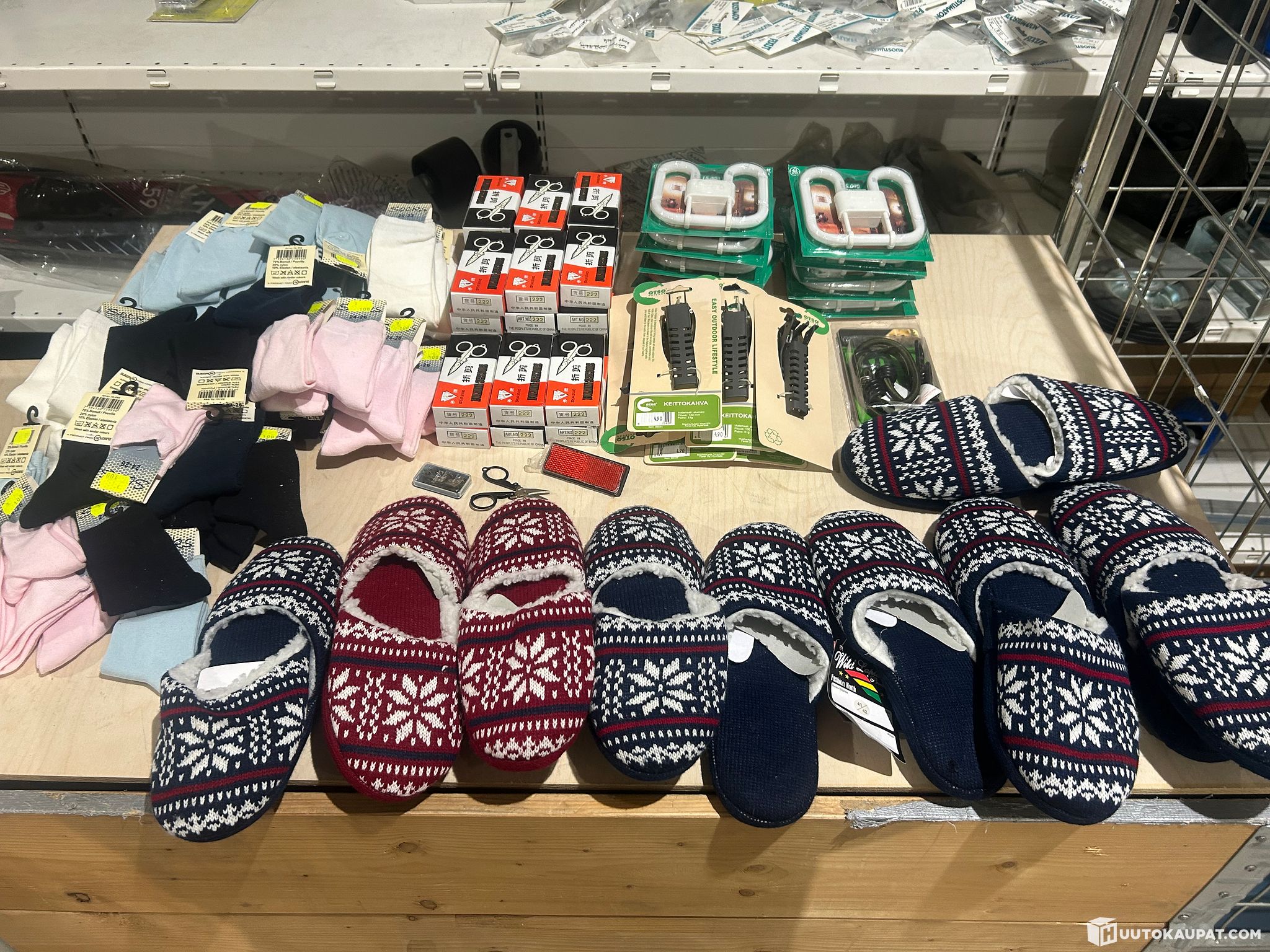 Myymälän 465kpl iso erä kaikenlaista kauppatavaraa sukkia,tohveleita ,saksia ym Erä 2.