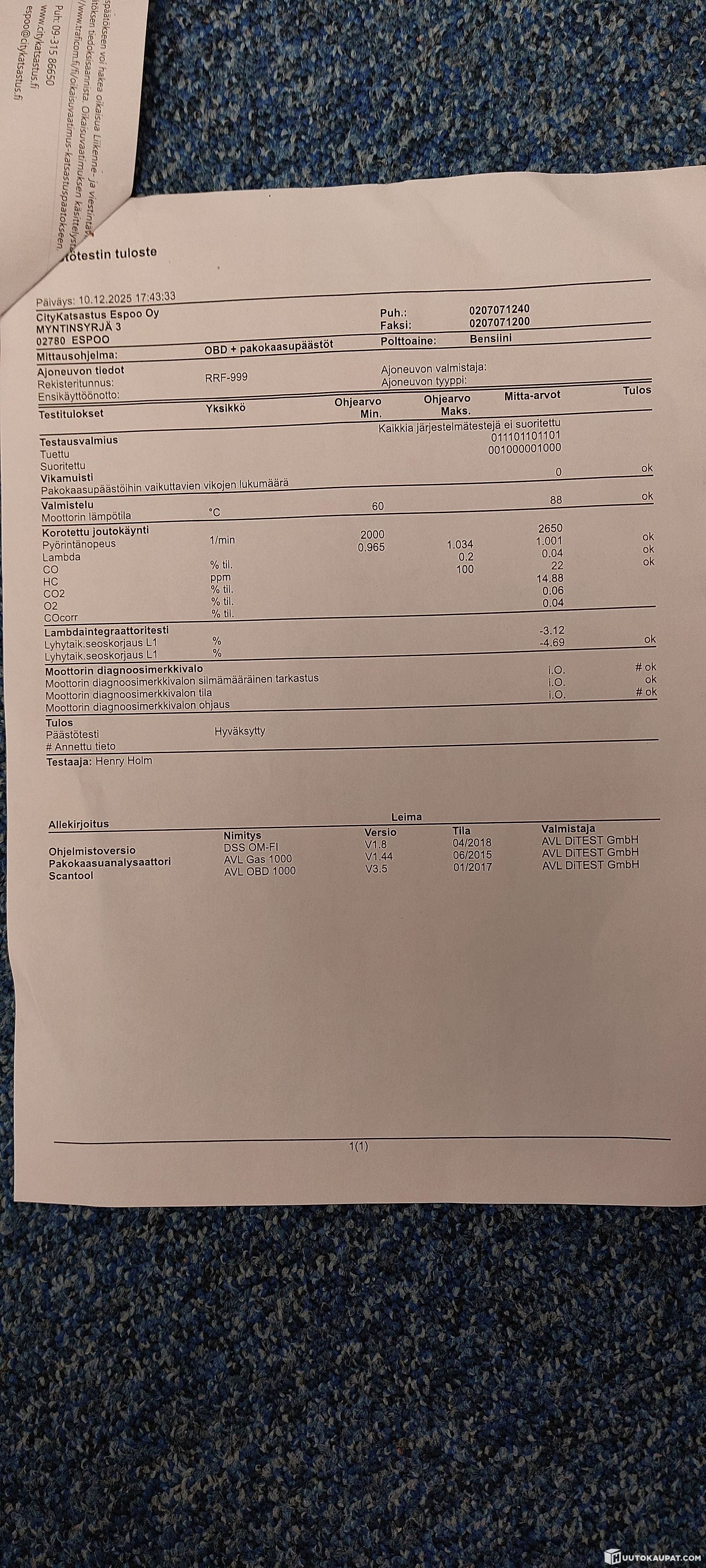 Katsastuksessa löytyneen viat ja huomautukset kuvassa. Helmat ruosteessa ja seisontajarru huono. Katsastuksessa kävi myös ilmi että autosta oli ollut takaisinkutsu, mitä en ollut saanut. Eli sekin pitäisi hoitaa että saa katsastettua.