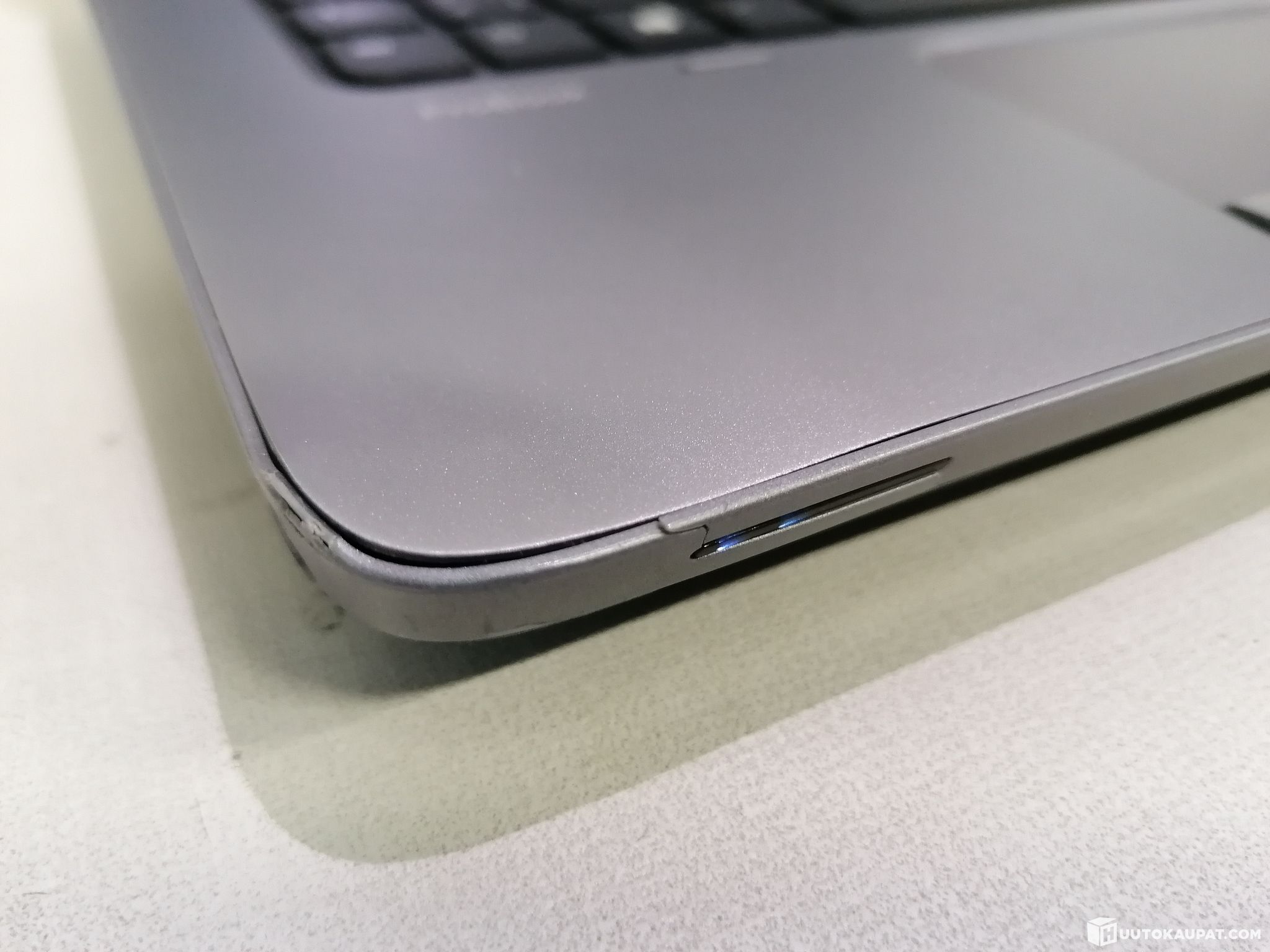 Kone on käytetty ja muuten pääosin siistissä kunnossa, mutta.Koneen toinen kulma on ottanut osumaa ja koneen muovi on siitä kulmasta hieman rytyssä/muovi haljennut, ei vaikuta itse koneen toimintaan, erottuu viimeisessä kuvassa.