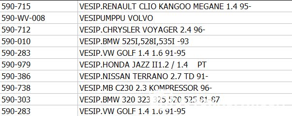 590-715 VESIP.RENAULT CLIO KANGOO MEGANE 1.4 95-