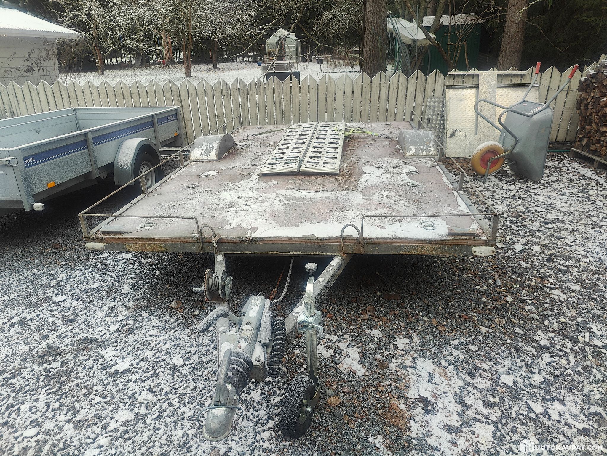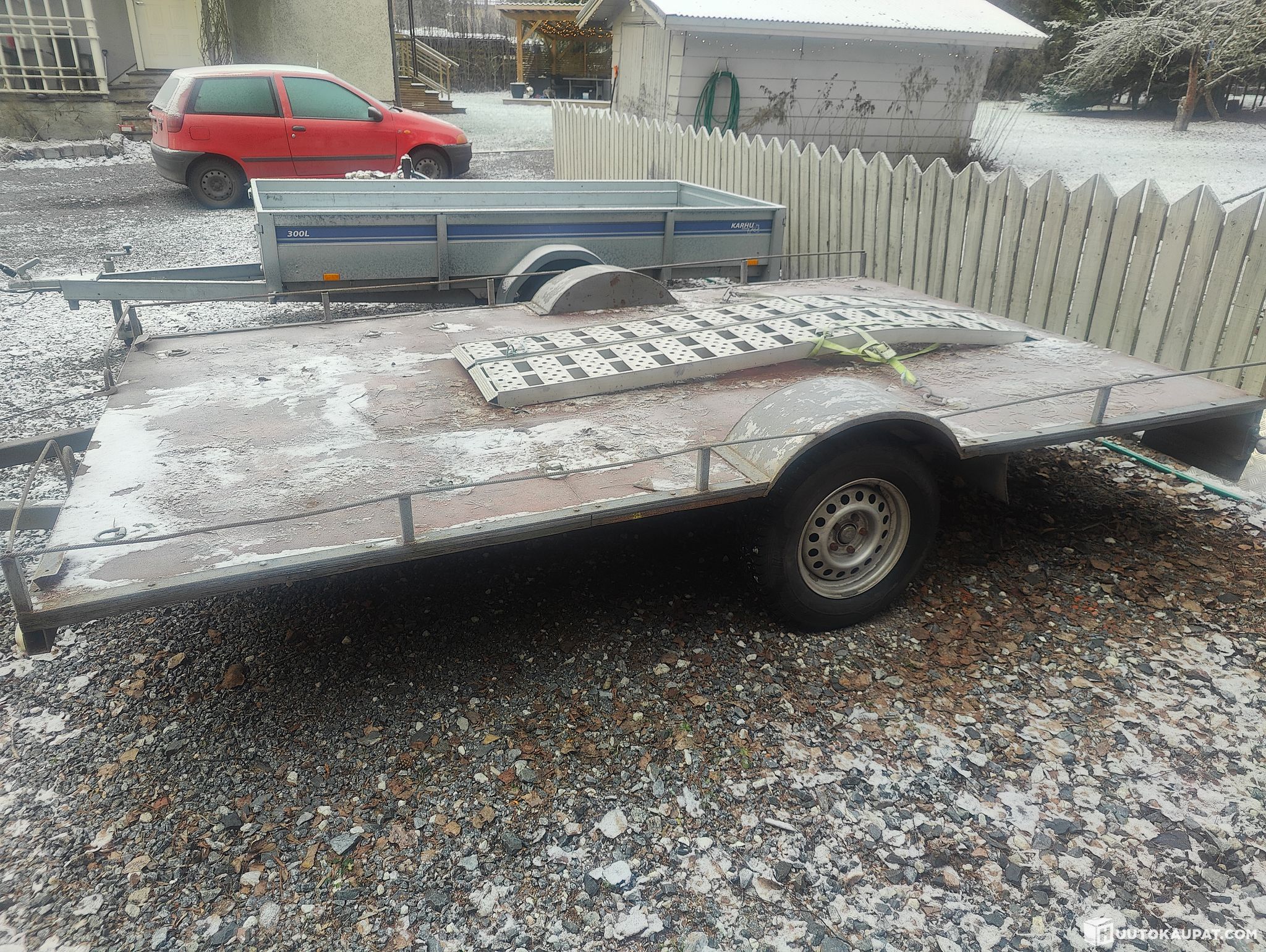 Näppärä traileri pienempien autojen kuljetukseen ja B kortilla vedettävä jos kokonaispaino jää alle 3500kg ja kevyt ja hyvä vetää perässä
