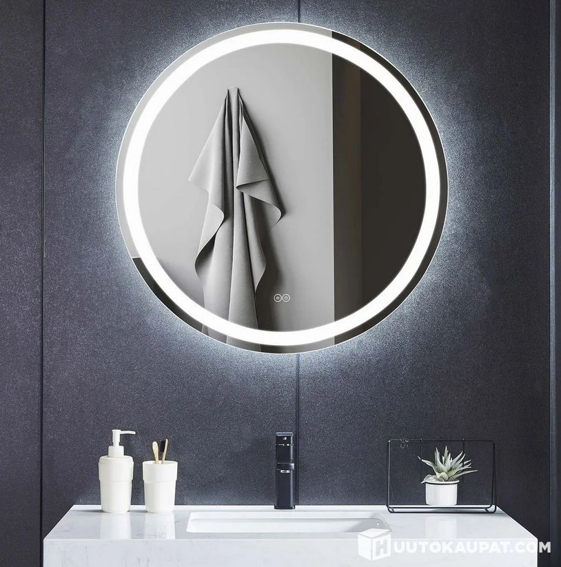 Tämä kylpyhuonepeili on suunniteltu sinulle, joka haluat nähdä oman peilikuvasi selkeästi ja hyvin valaistuna - monikäyttöinen kylpyhuonepeili moderniin tyyliin sisäänrakennetulla valaistuksella. Laadukkaat 2835 LED-valot tarjoavat miellyttävän hehkun eteenpäin ja antavat sinun nähdä juuri sen, mitä haluat nähdä, häikäisemättä. Voit helposti ohjata valaistusta peilin kosketuspainikkeella. Pitämällä sormea painikkeella voit myös himmentää valoa haluamallesi voimakkuudelle!