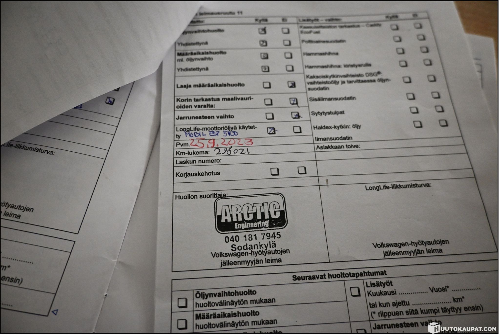 Kattava huoltokirja ja ajolleen hyvän tuntoinen