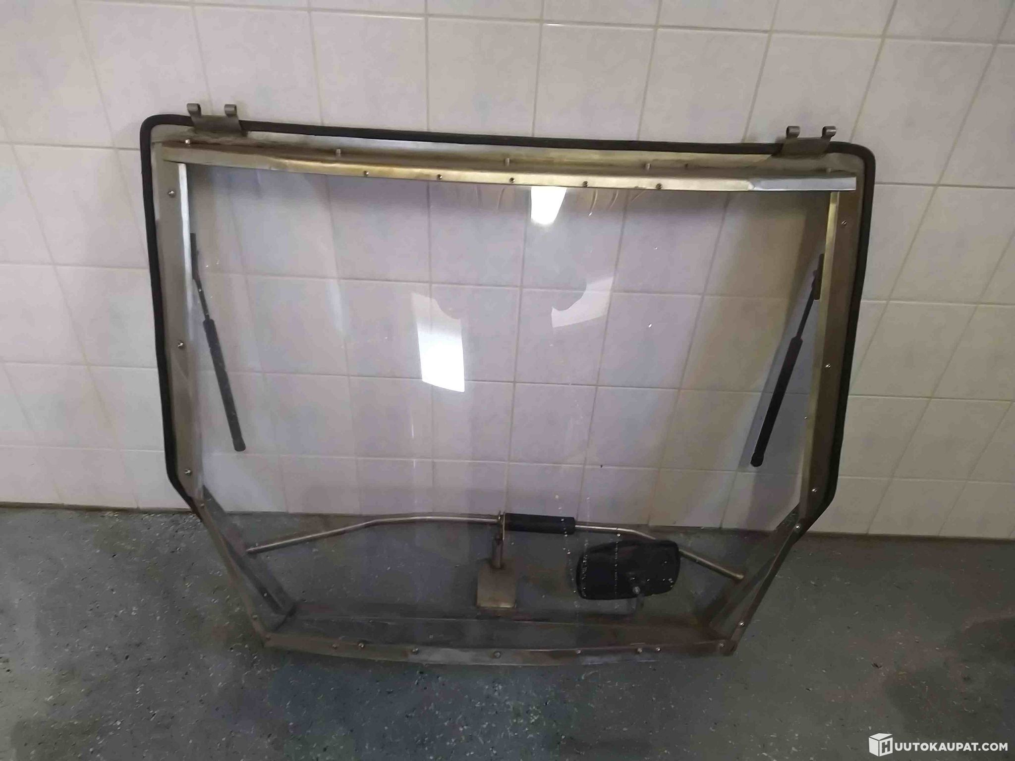 Hyvä käytetty itsetehty Valtran C-sarjan metsämallinen takaikkuna jossa paikat kuormaajan vivuille.