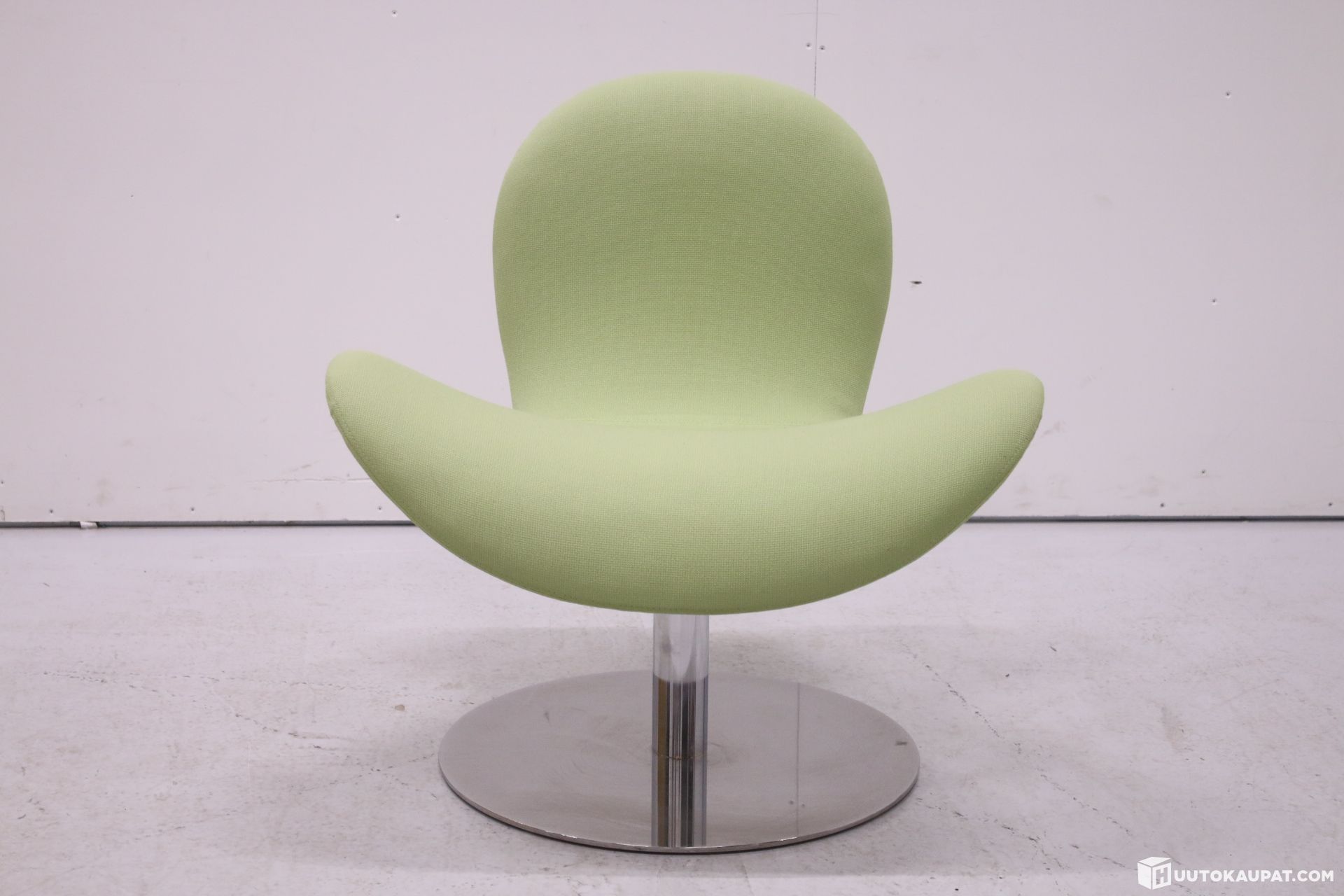 Tyylikäs Martelan Fly Me-nojatuoli kromisella laippajalalla. Tuolissa on palautusmekanismi.