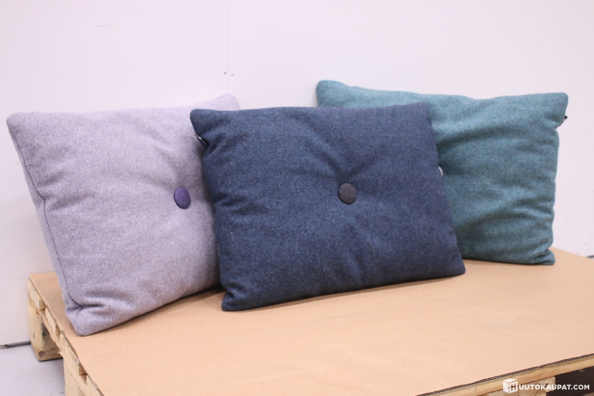 Hayn Dot-tyynyt, kolme eri sävyä. Kolmen kappaleen erä siisti kuntoisia tyynyjä.