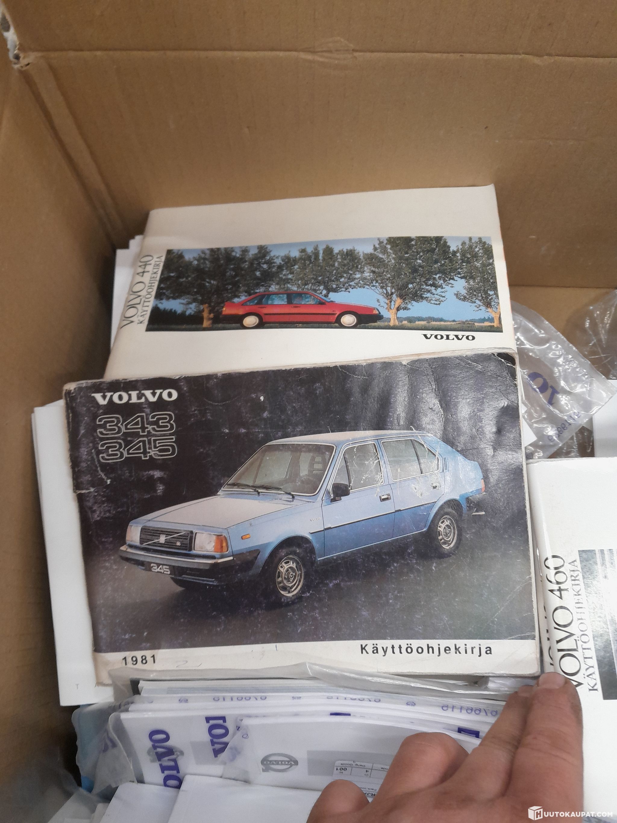 Huolto-ja käyttöohjekirjoja laatikollinen.