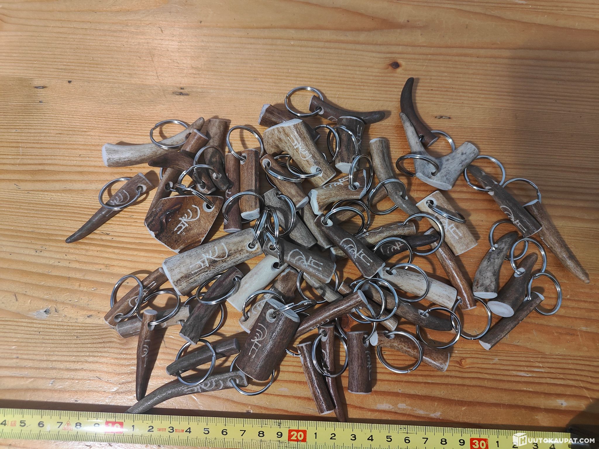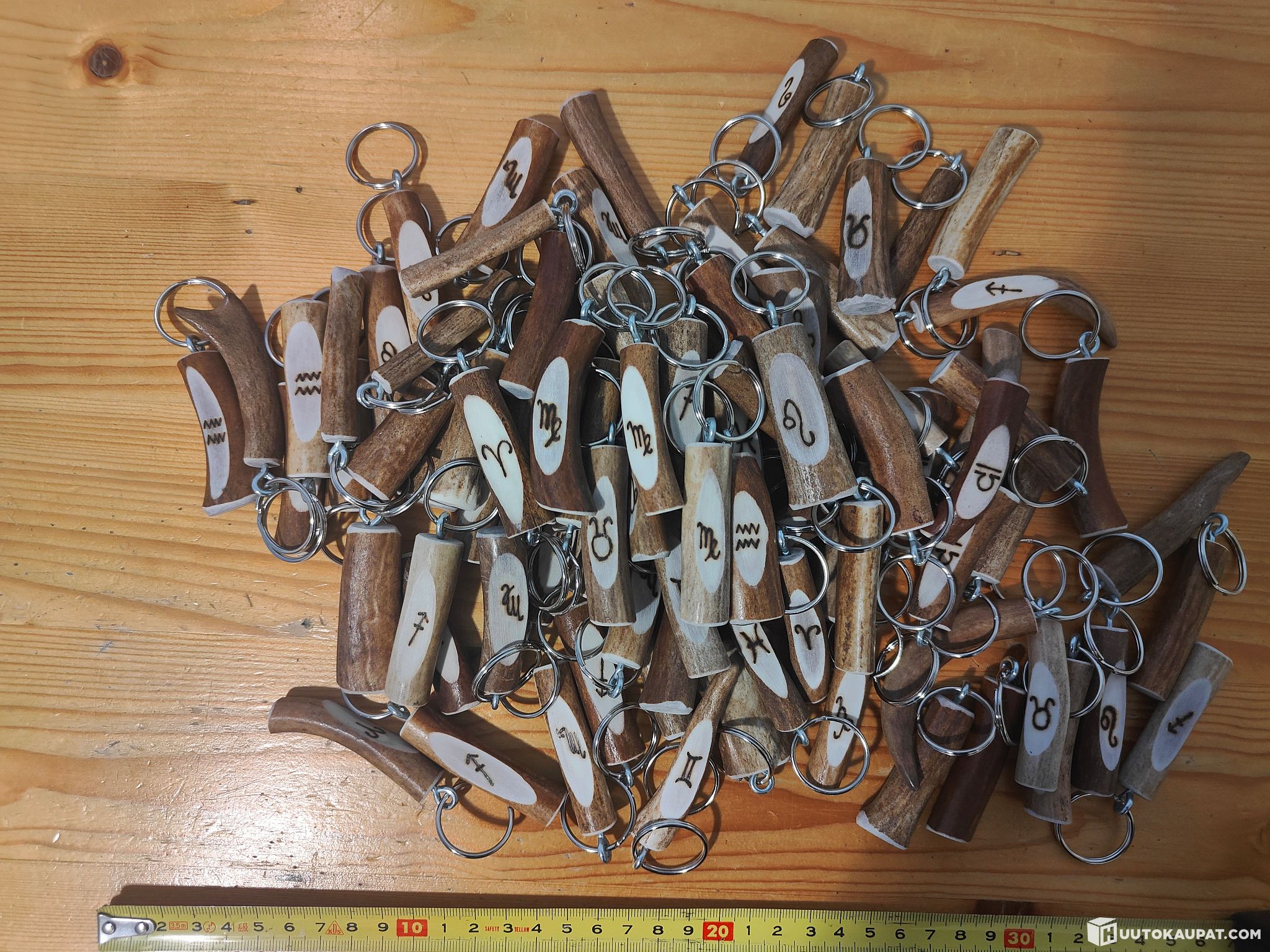 Poronsarvisia avaimenperiä 220 kpl. 50 kpl porokuviolla, 90 kpl horoskooppi kuviolla ja 80 kpl ilman kuviota. Avaimenperän keskimääräinen ovh. 7,40€. Koko erän arvo 1628,00€.