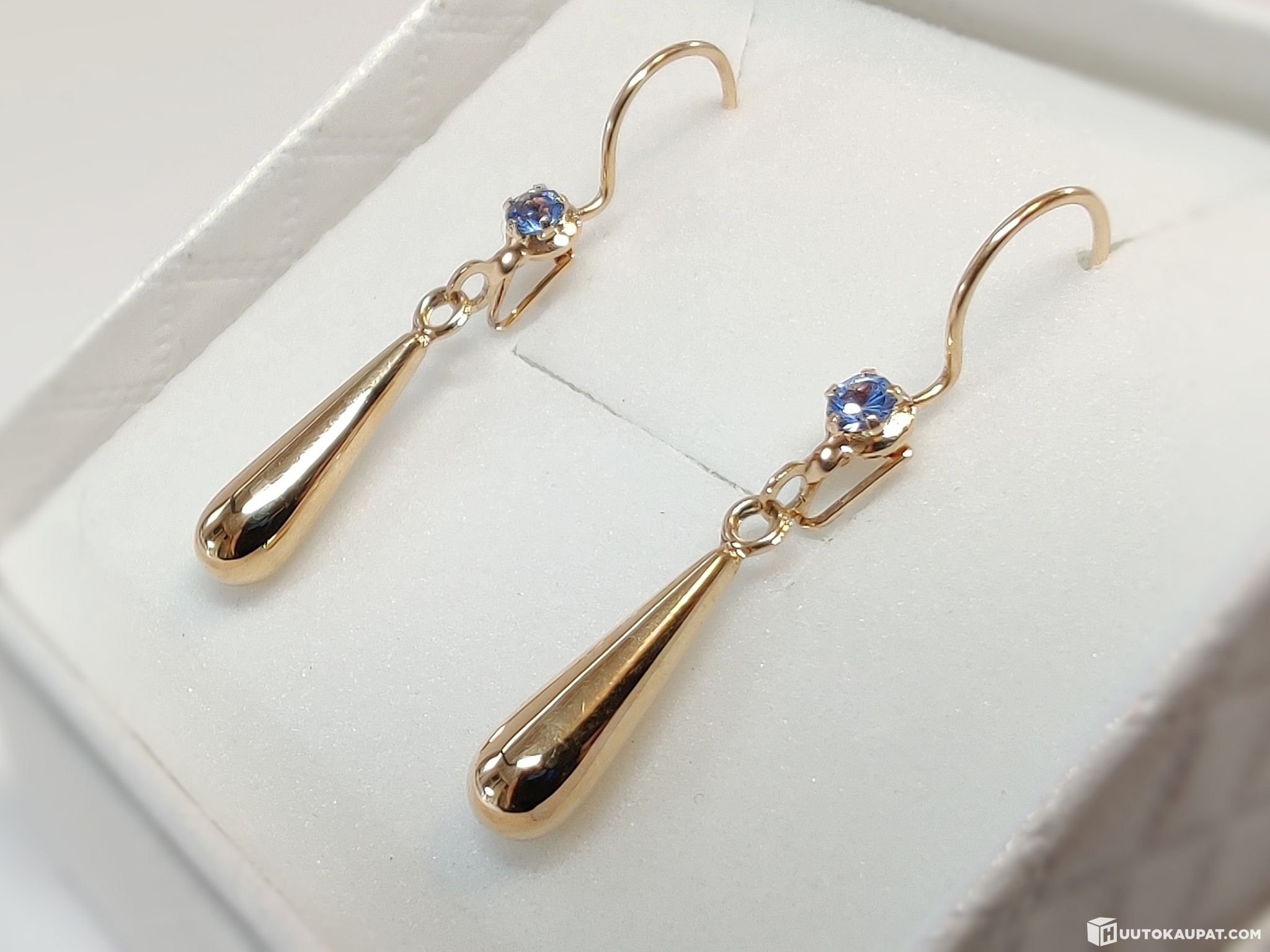 Kauniit akvamariinikoristeiset kyynelkorvakorut 585 14k kultaa.