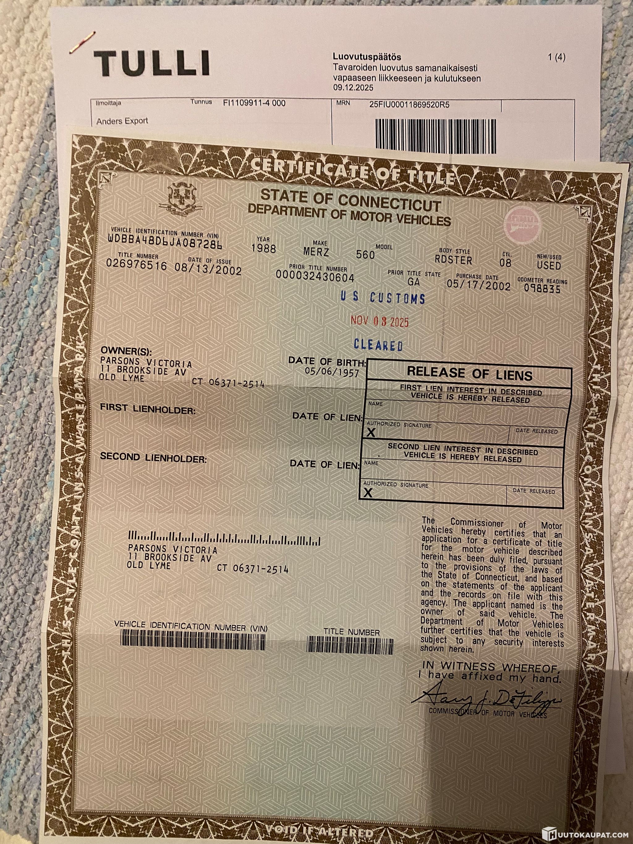 Juuri USA sta saapunut 560SL projekti, seisonut vuosia (edellinen omistaja vuodesta 2002), kertoi että jäänyt ajosta tarpeettomana, nyt kokeiltu käyntiin, startti pyörittää mutta ei hörähtänyt, varmasti kaipaa herkistelyä, renkaat pykineet, sisusta korjausta, ym loistava harraste auto jonka arvo vaan nousee, kuvista näkee kuntoa paremmin.
