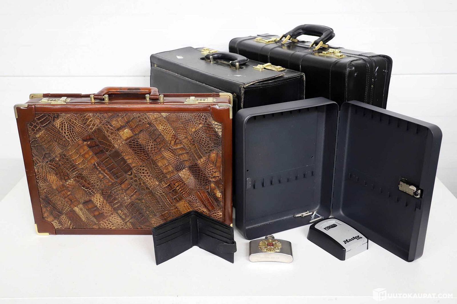 Dobermann- ja Franzen-salkkuja, avainkaappeja, taskumatti ja nahkalompakko. S5146, Hausjärvi