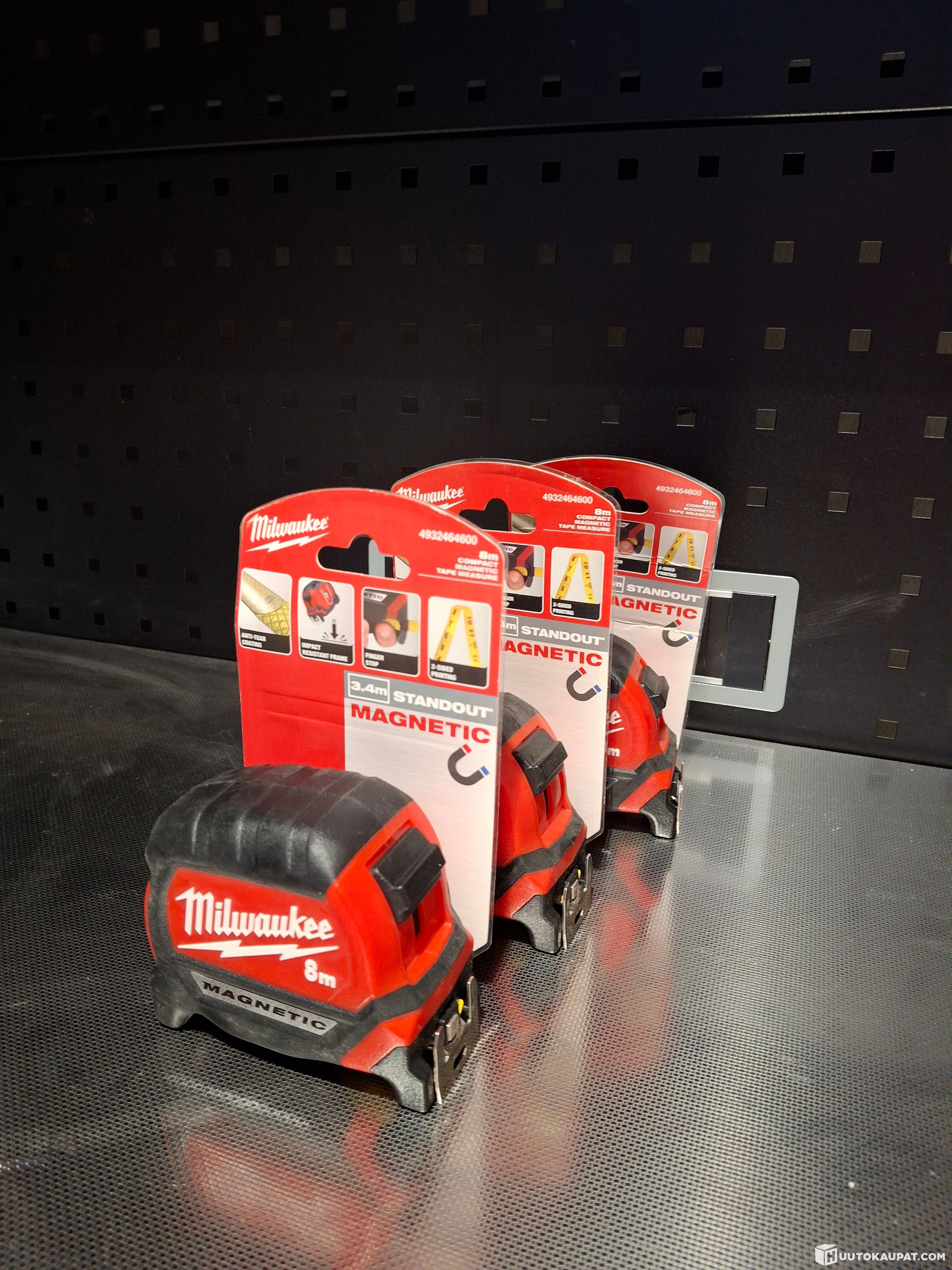 Voimakas kaksoismagneetti mitan alkupäässä, helppo sijoittaa tasaisille pinnoille ja pyöreille putkille.