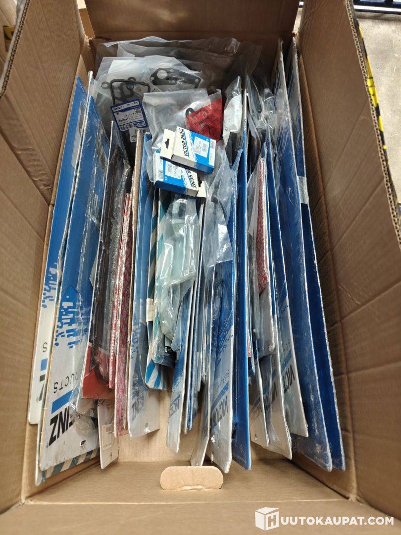 Iso laatikollinen erilaisia moottorintiivisteitä henkilöautoihin laidasta laitaan. Paketissa mukana mm. venttiilikopan, imusarjan, pakosarjan, kannen ja öljypohjan tiivisteitä.