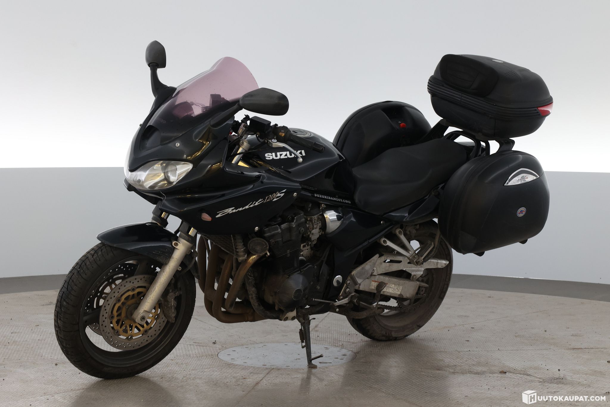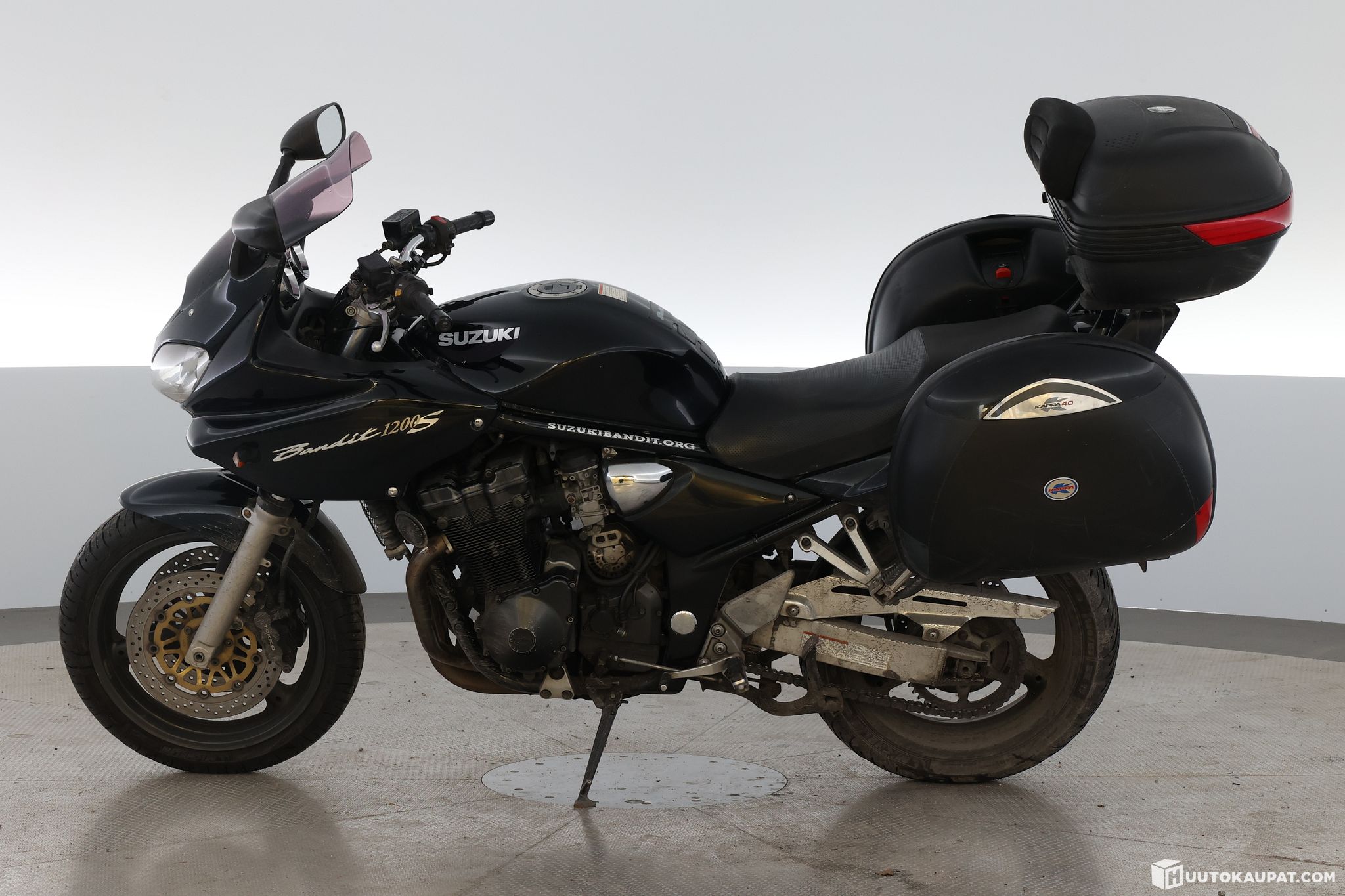 Ajamalla meille joulukuussa tullut siistikuntoinen musta Suzuki 1200S Bandit. Pyörällä on jo ikää, joka näkyy lähinnä kilsoina mittarissa, mutta kaikki tuntuu pelittävän vaihtoon ajettaessa ja pienellä koeajolla.