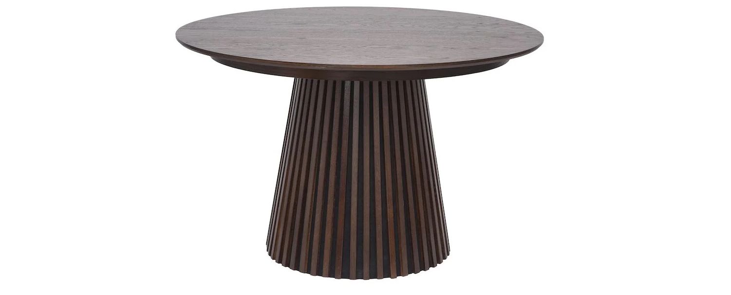 Ruokapöydän veistokselliset jalat ovat näyttävä yksityiskohta, joka tuo esille puun luonnollisen kauneuden ja korostaa pöydän massiivista olemusta. Samalla ne varmistavat, että pöytä seisoo tukevasti. Pöydän kaunis kansi on tammiviilutettua kalustelevyä.
