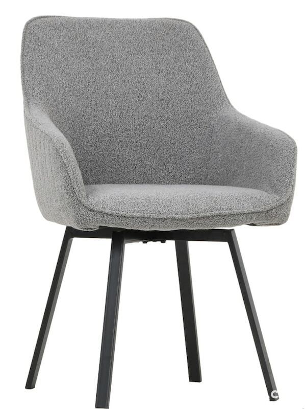 Alessio on tyylikäs ja monipuolinen tuoli ruokapöydän tai työpöydän ääreen. Tuolissa on 360˚ pyörivä istuinosa, joka helpottaa pöydän äärestä nousemista. Tuolin muotoilun ansiosta tuolissa on erittäin miellyttävä istua. Tuoli on verhoiltu kauniilla ja eläväpintaisella buklee-kankaalla, joka on kestävää 100% polyesteriä. Istuinosa on vaneria ja jalat mustaksi maalattua metallia.