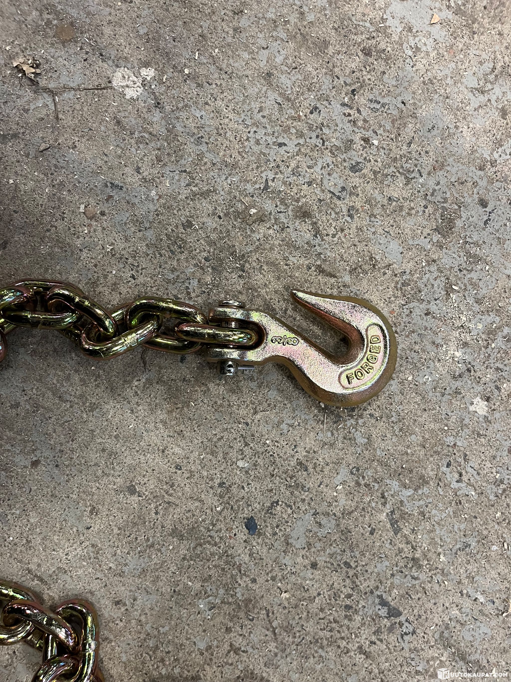 Kätevä, lyhyempi järeä 10mm ketjulenkillä oleva sidontaketju . Pikkukoukulla sopii ahtaaseen väliin ja saa napattua ketjulenkin välistä kiinni.