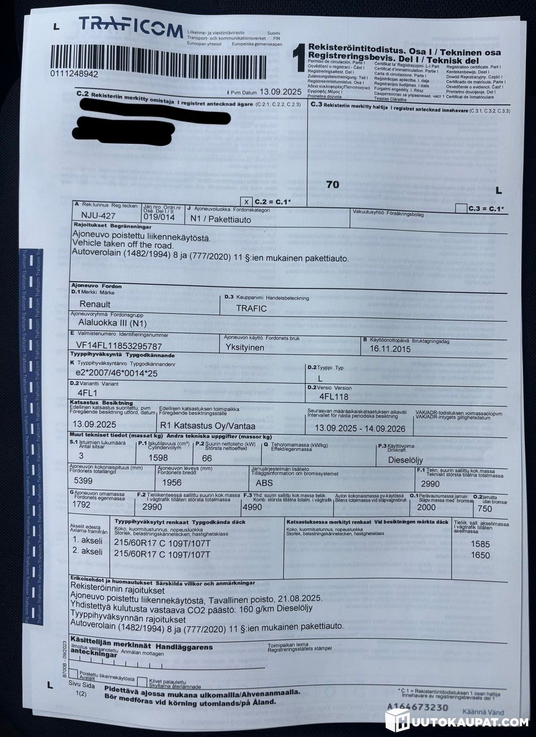 Kuljetus Hannu Tuomalainen ilmoittaa, Huutokaupat.com myy
