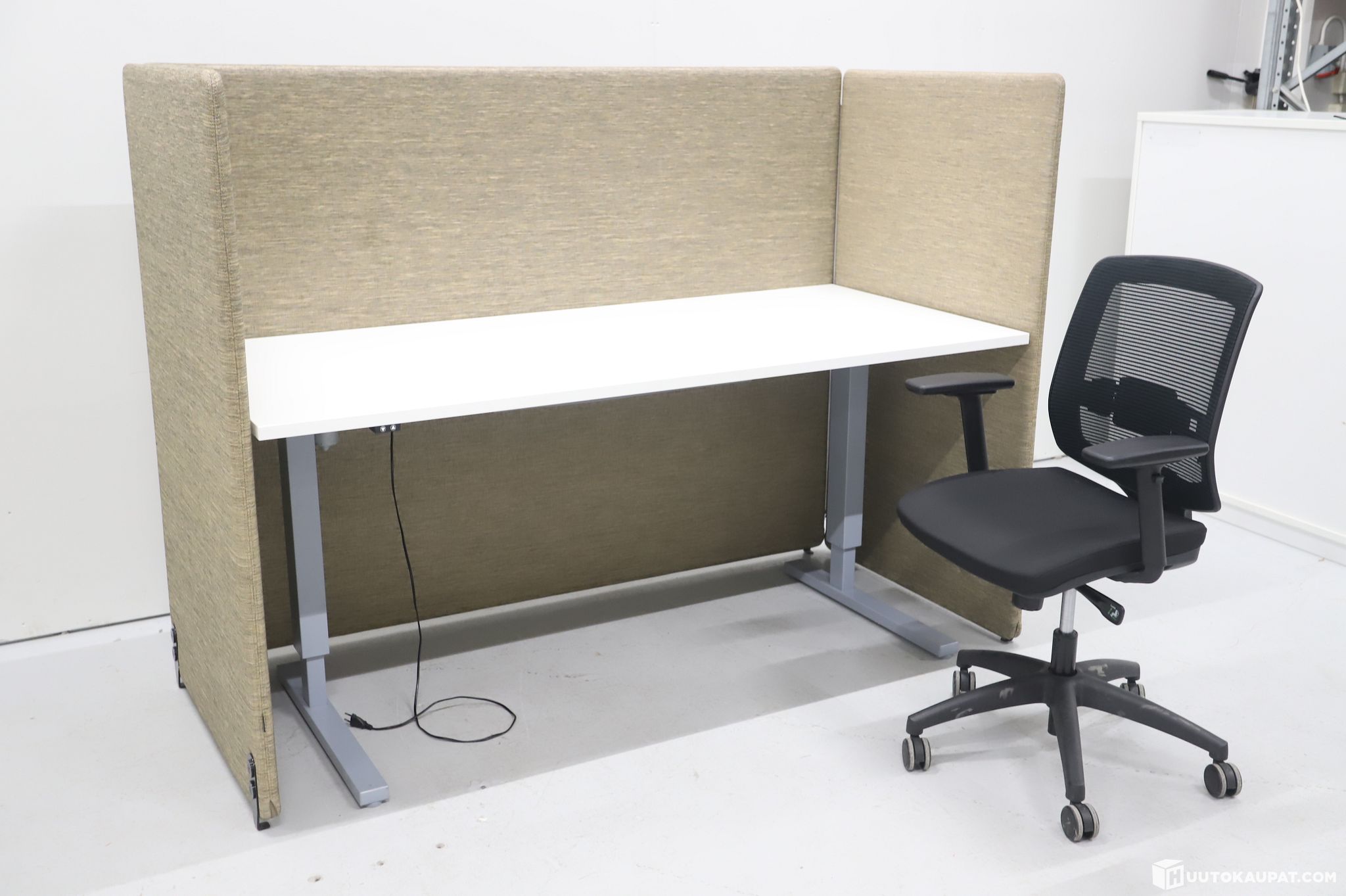 Valmis kokonaisuus suoraan käyttöön. Sisältää laadukkaat Götessonin akustoivat seinäkkeet, Stanley työtuolin ja 180x80 sähköpöydän. Seinäkkeet kiinnittyvät toisiinsa vetoketjuilla.