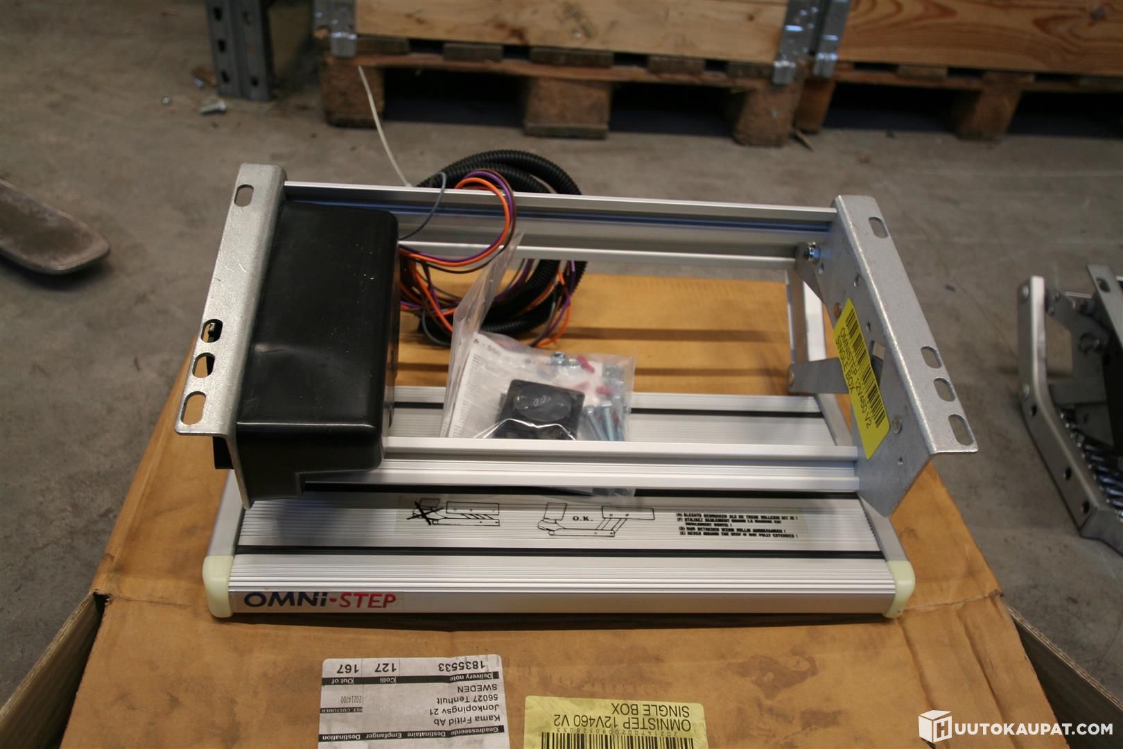 Omnistep 12V sisään taittuva astinlauta.Leveys 420 ja syvyys 200. Sisältää katkaisija painikkeen.