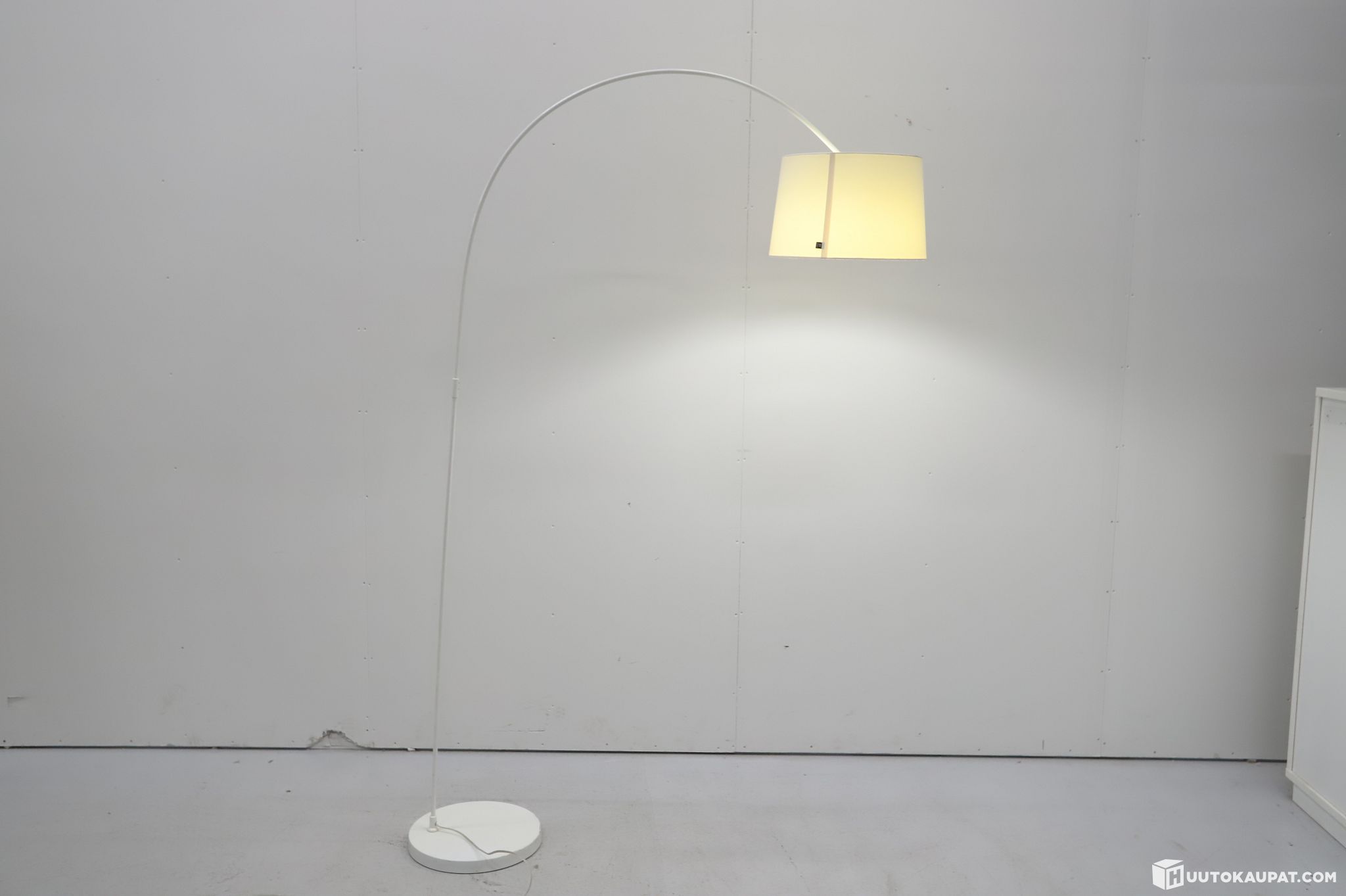 Tyylikäs kaareva lattiavalaisin. Säädettävä varsi ja valon kirkkauden säätö.