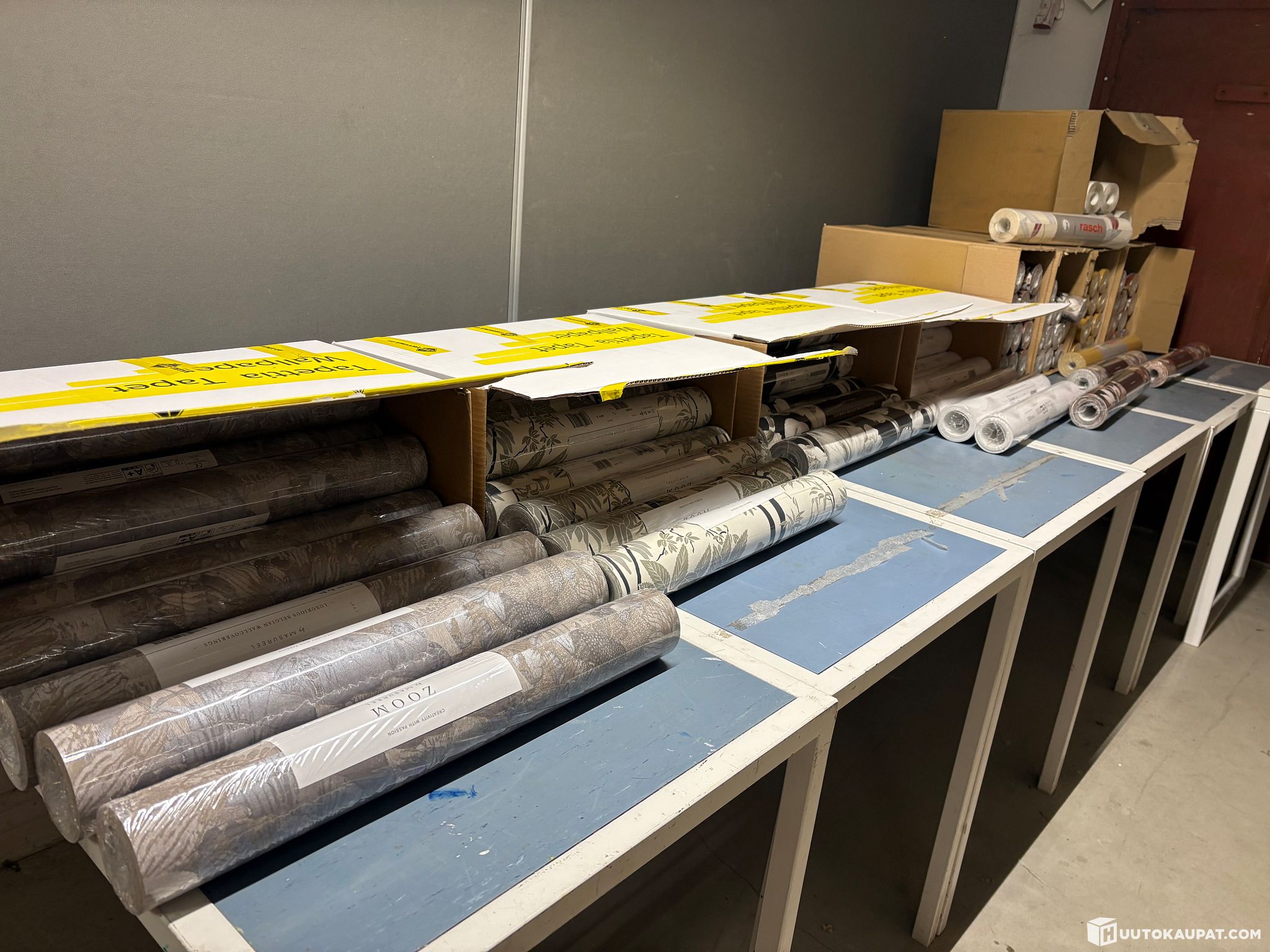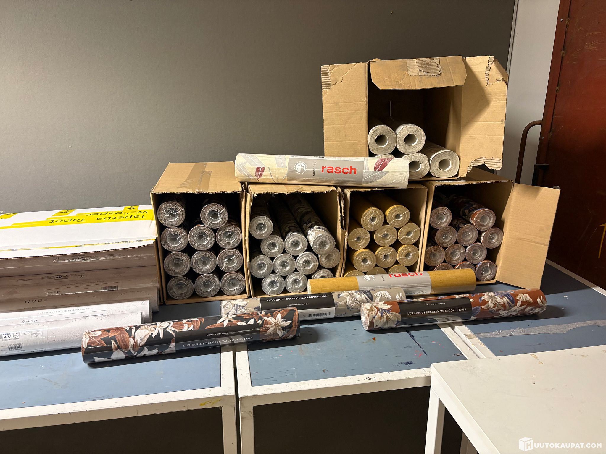 Löytyy myös täysiä lavoja ja myös vaalea sävyisiä tapetteja ja myös vähän lasikuitutapettia.