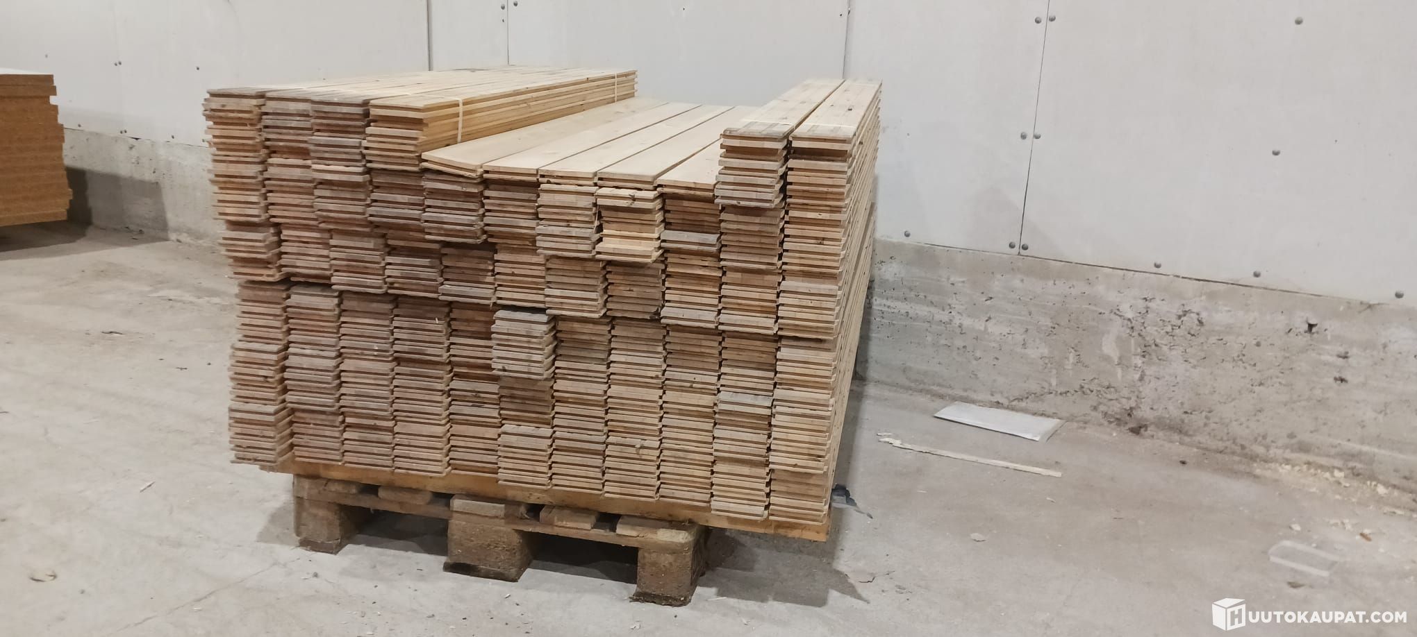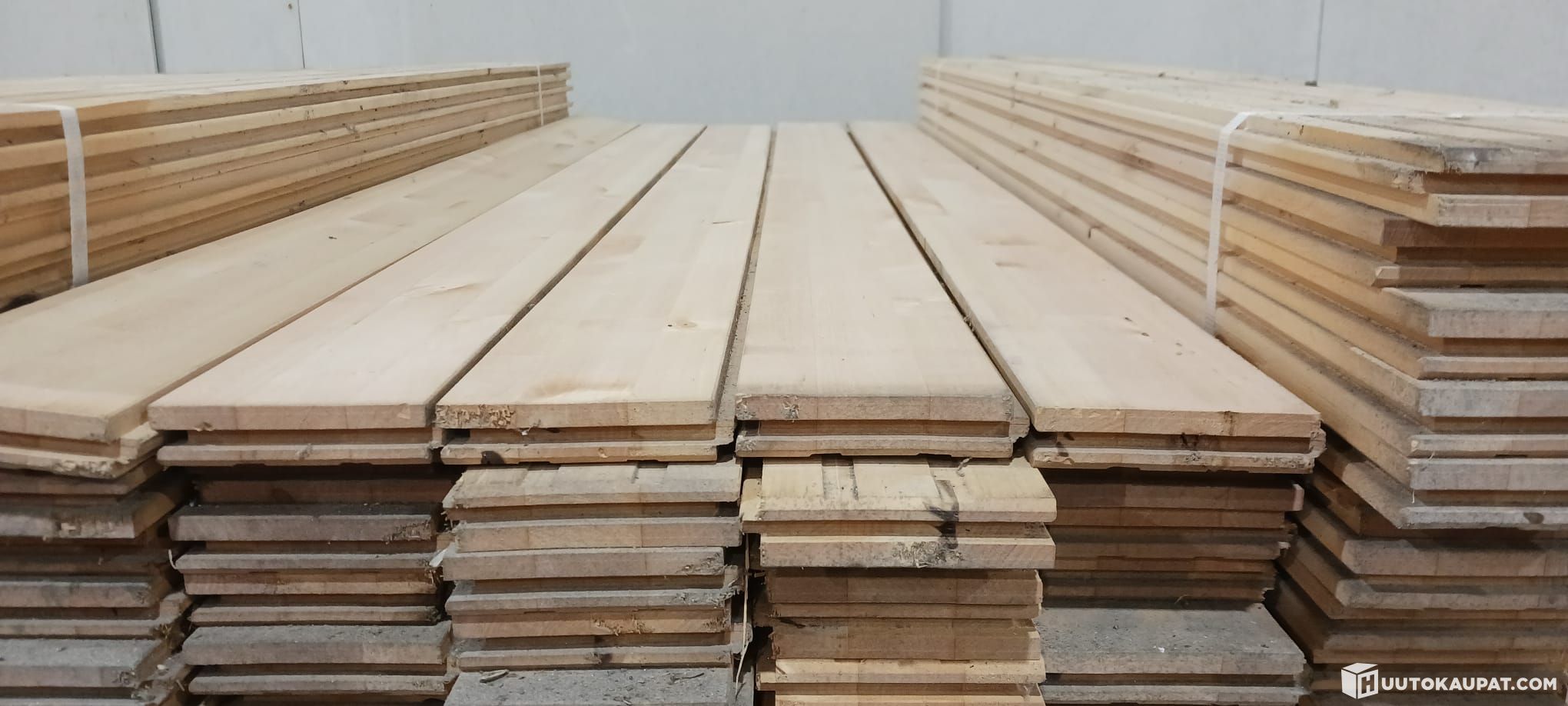 Vähän harvinaisempi erä, lähes oksatonta koivu lattialautaa.