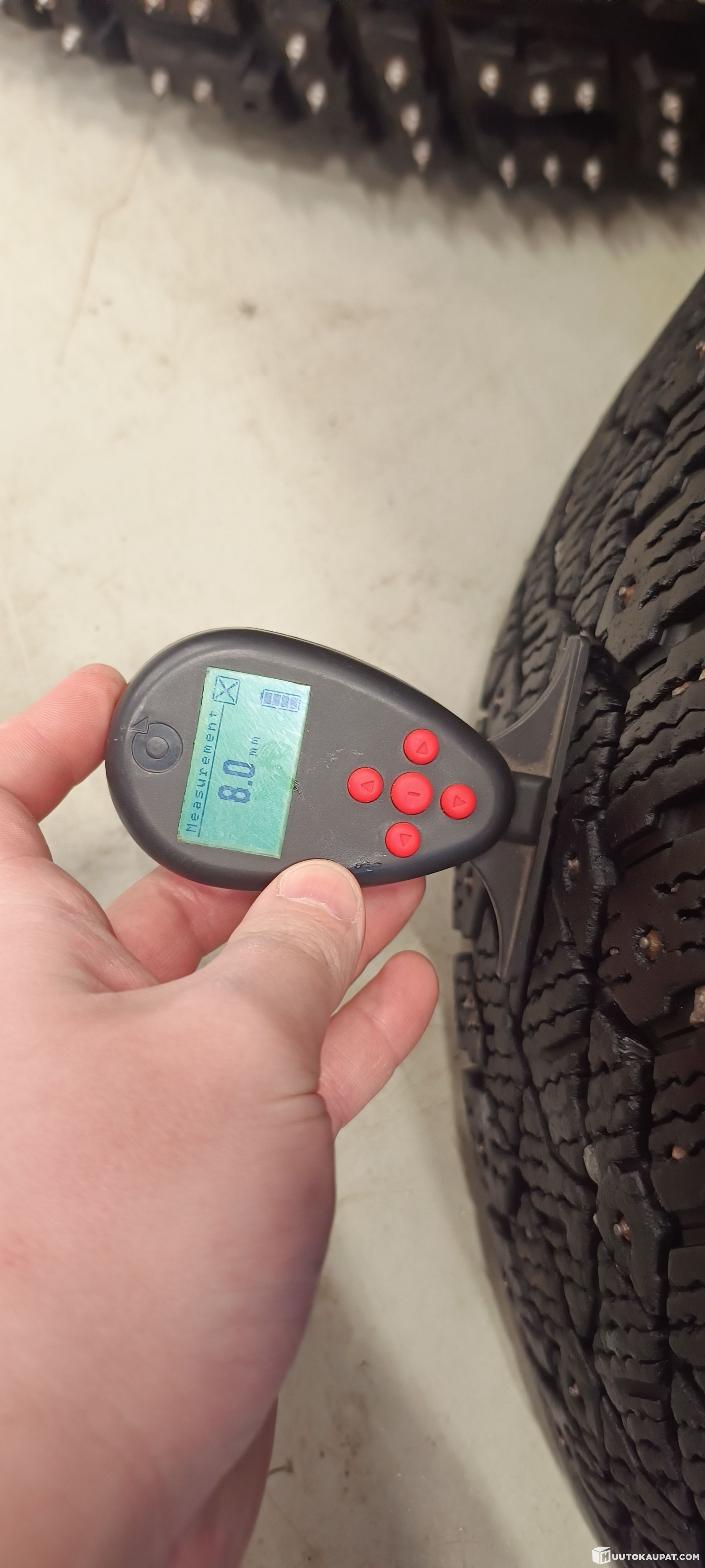 Myynnissä kuvien rengassarja (4kpl). Käytetty sarja. Pintaa 7.1- 8mm. Joku satunnainen nasta voi puuttua.