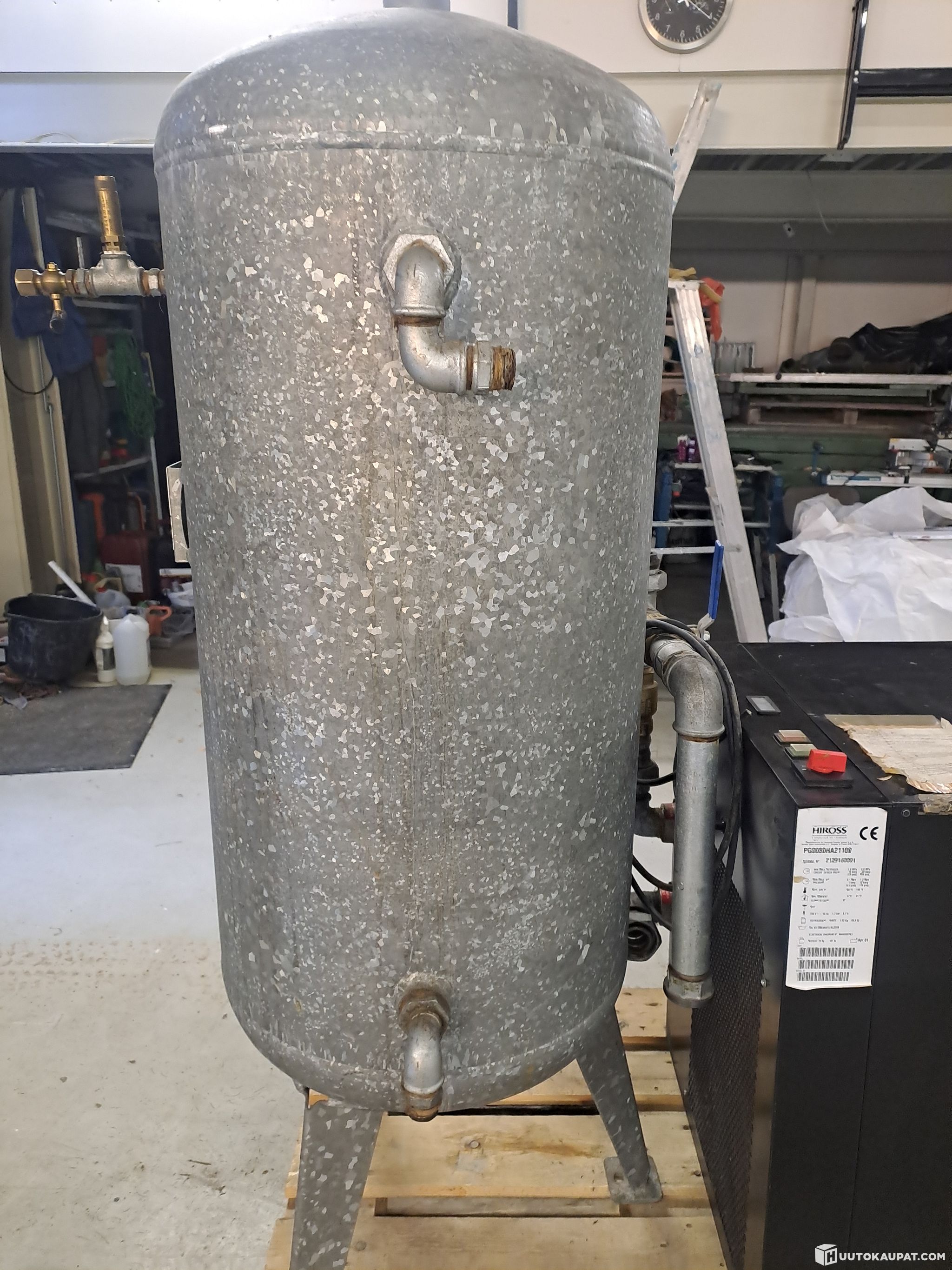 Hyväkuntoinen galvanoitu laadukas painesäiliö pystymalli 270 litraa jaloilla, mittarilla ja hanoilla yns tarvikkeilla.