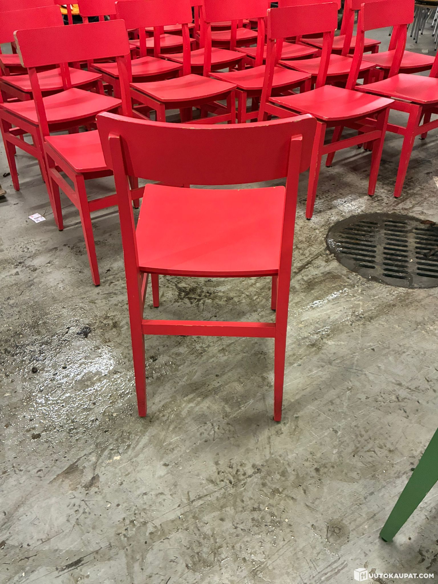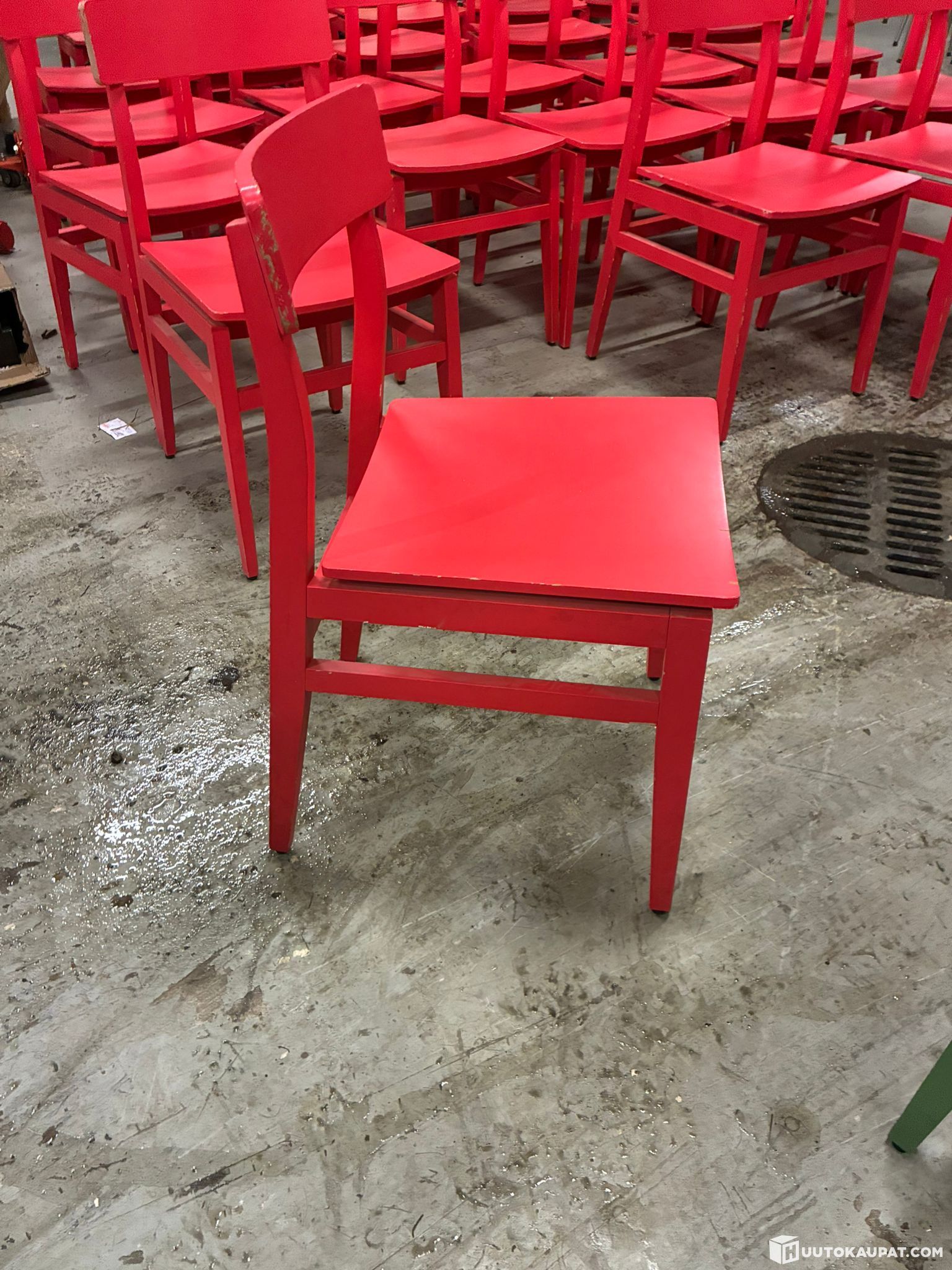 25 punaista jämäkkää puutuolia.