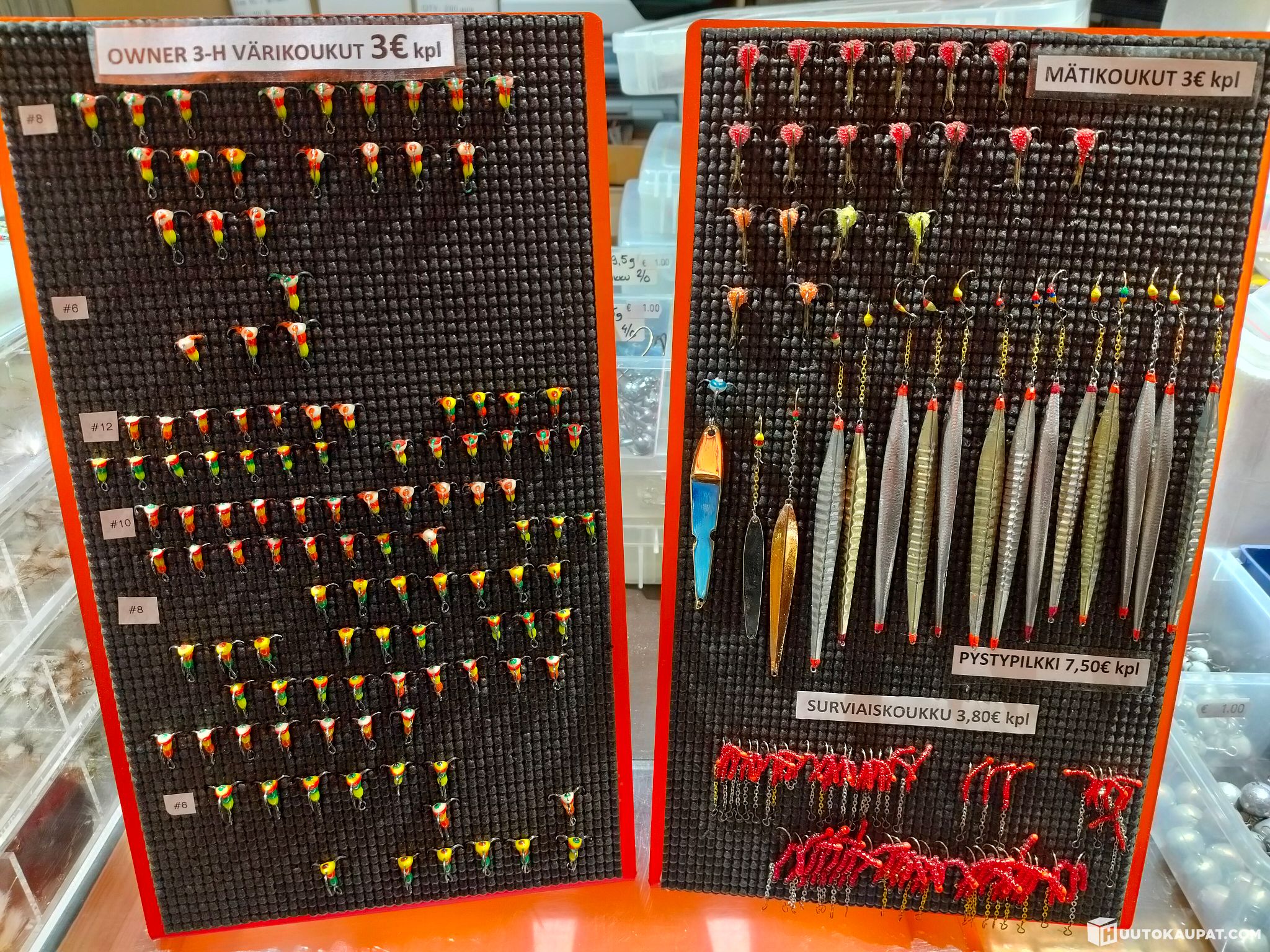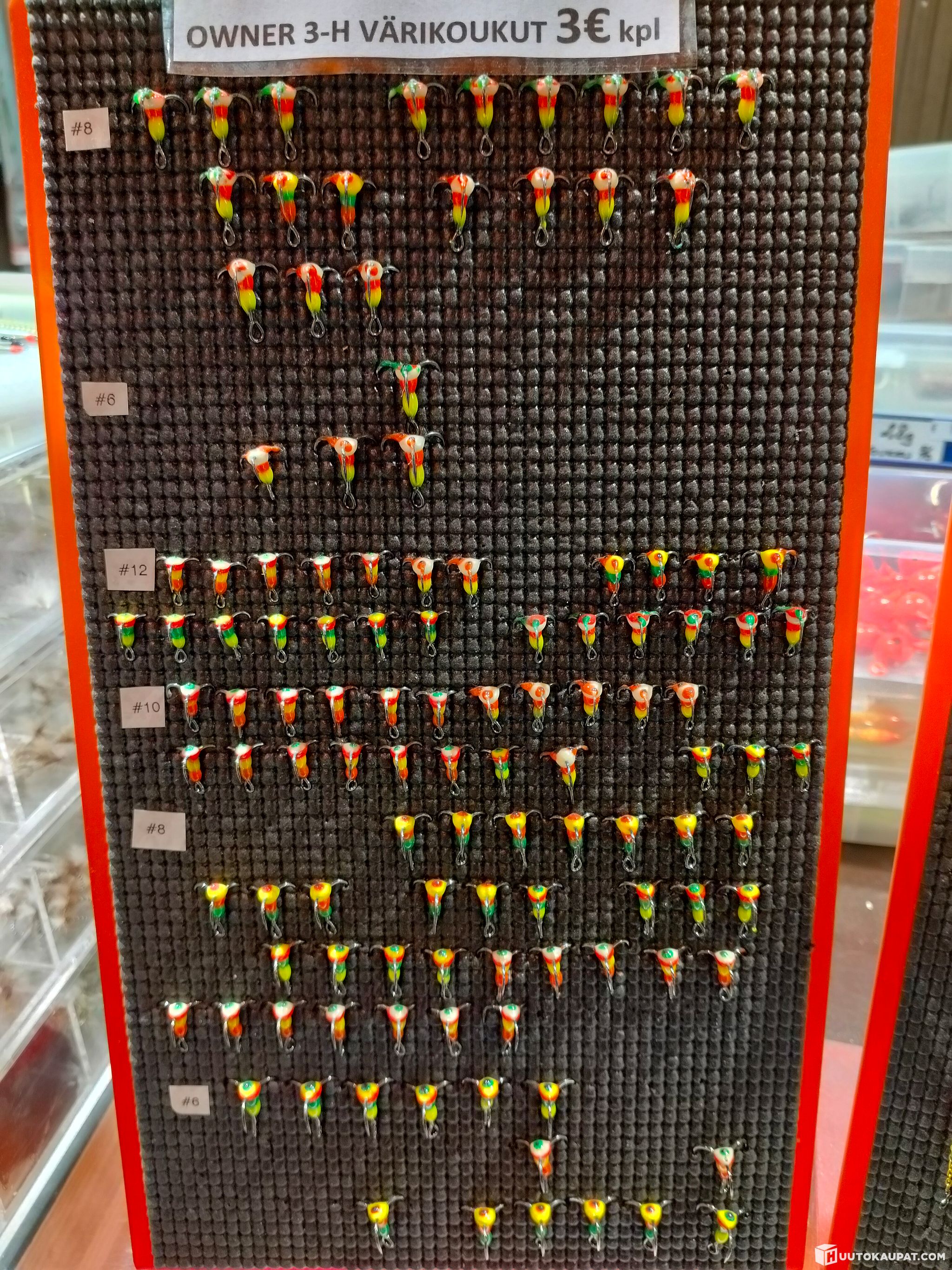 Erä sisältää väri-, mäti- ja surviaiskoukkuja sekä pystypilkkejä.