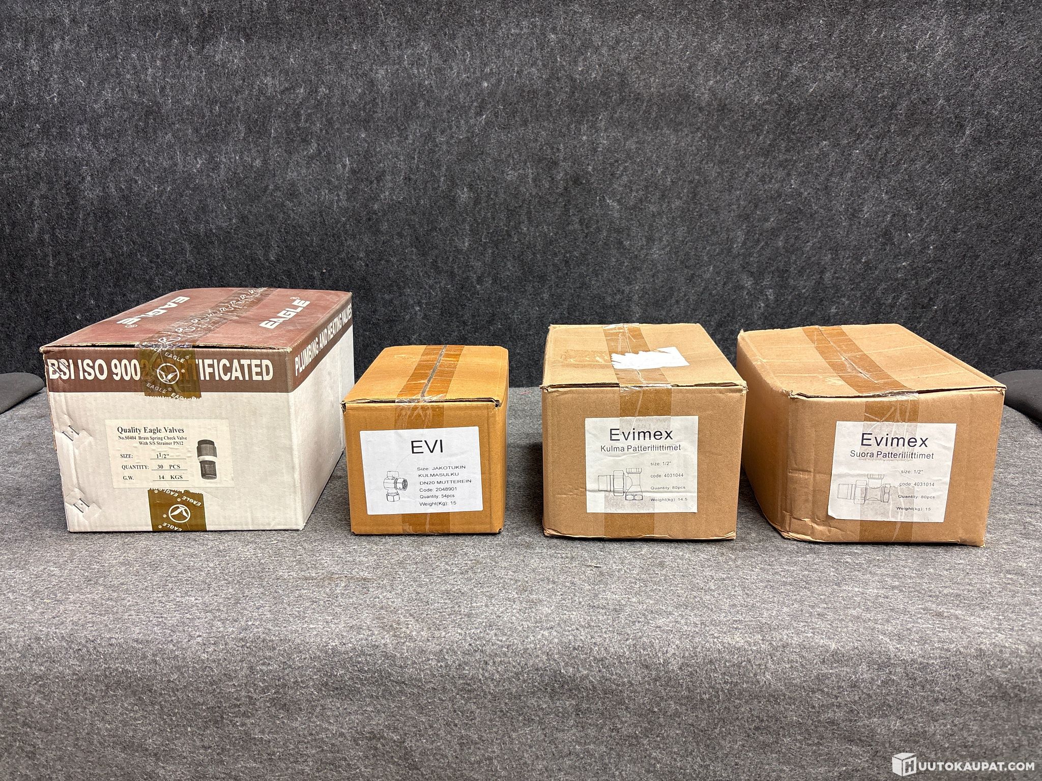 Takiskuventtiili, kulmasulku, patteriliitin (erä 1364) Evimex Oy konkurssipesä 3458034-9, Espoo