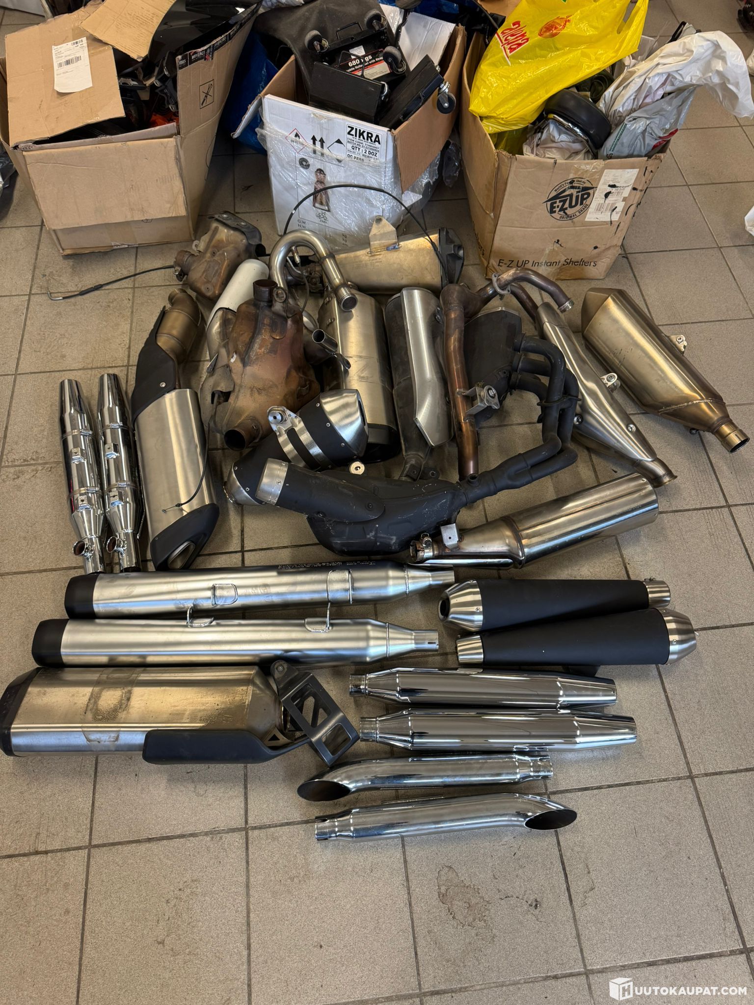 Myydään kasa moottoripyörien putkia/slipareita. Tuotteissa on käytönjälkiä eikä niiden toimivuutta ole testattu. Myydään kasana korkeimman huudon tehneelle.