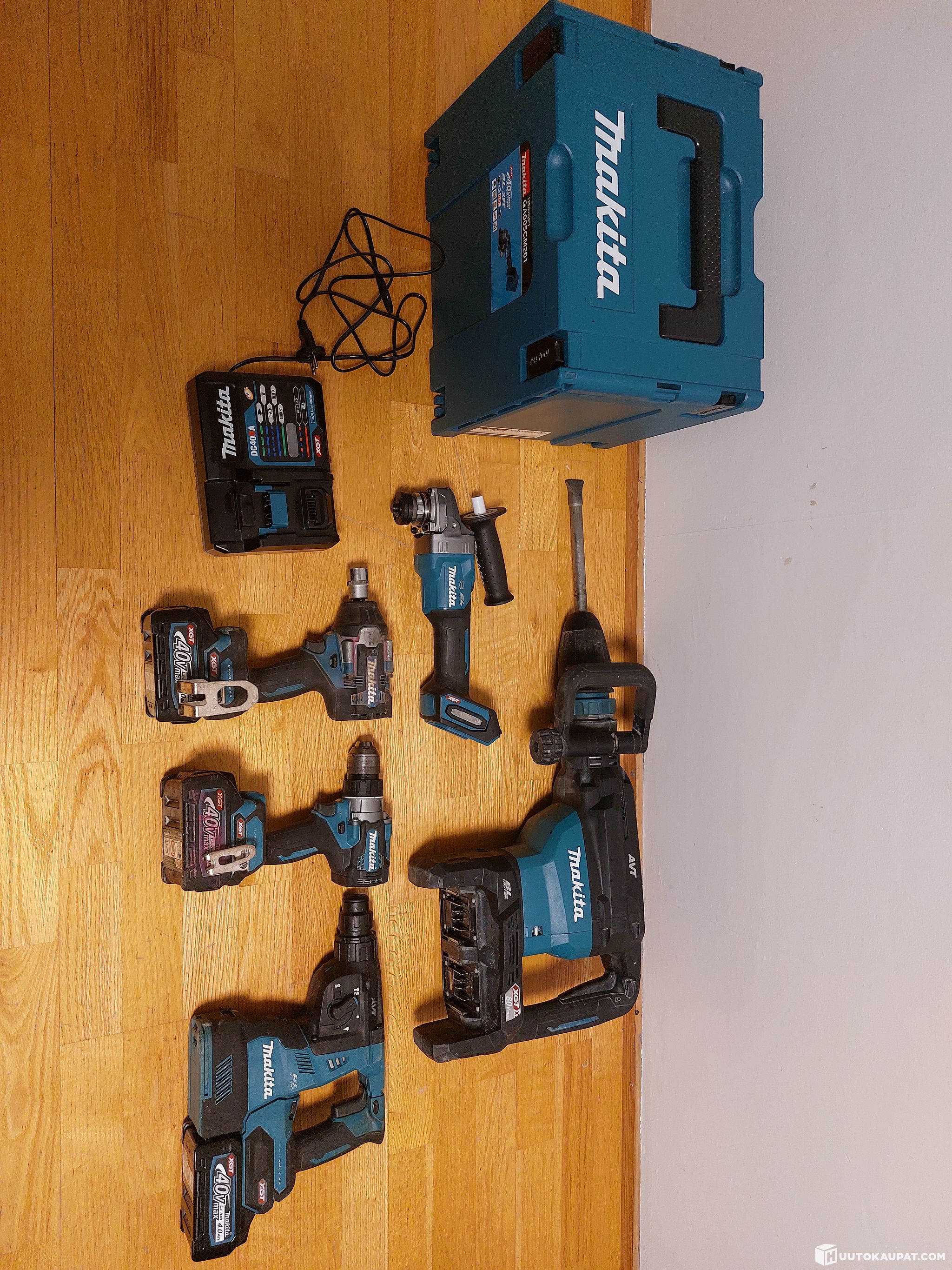 Tehokkaat Makita akkutyökalut, 40v 4.0ah akuilla, mukana 3kpl akkuja ja yksi laturi.