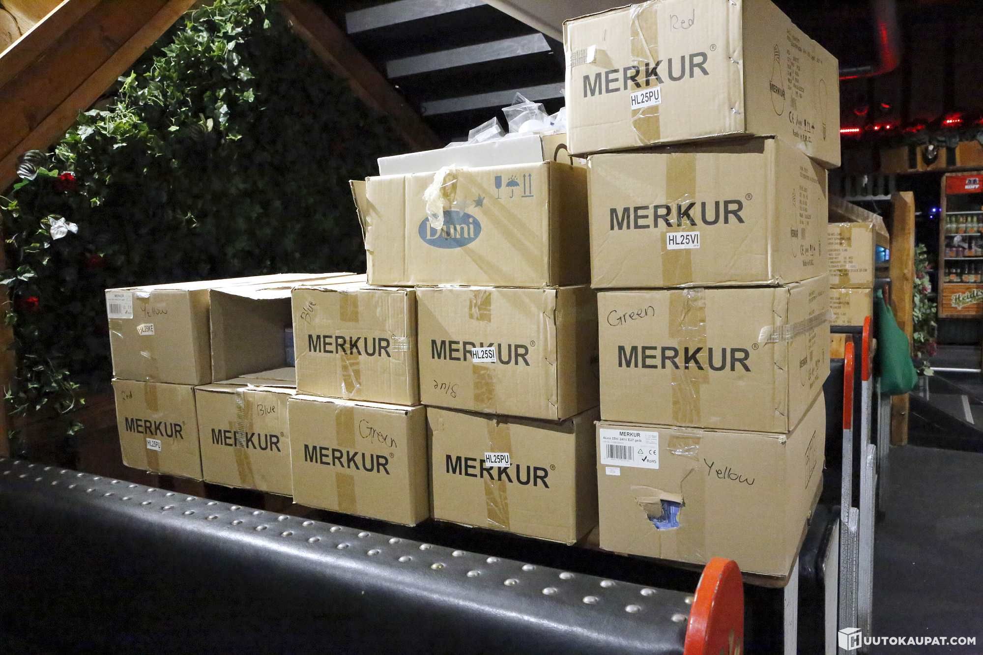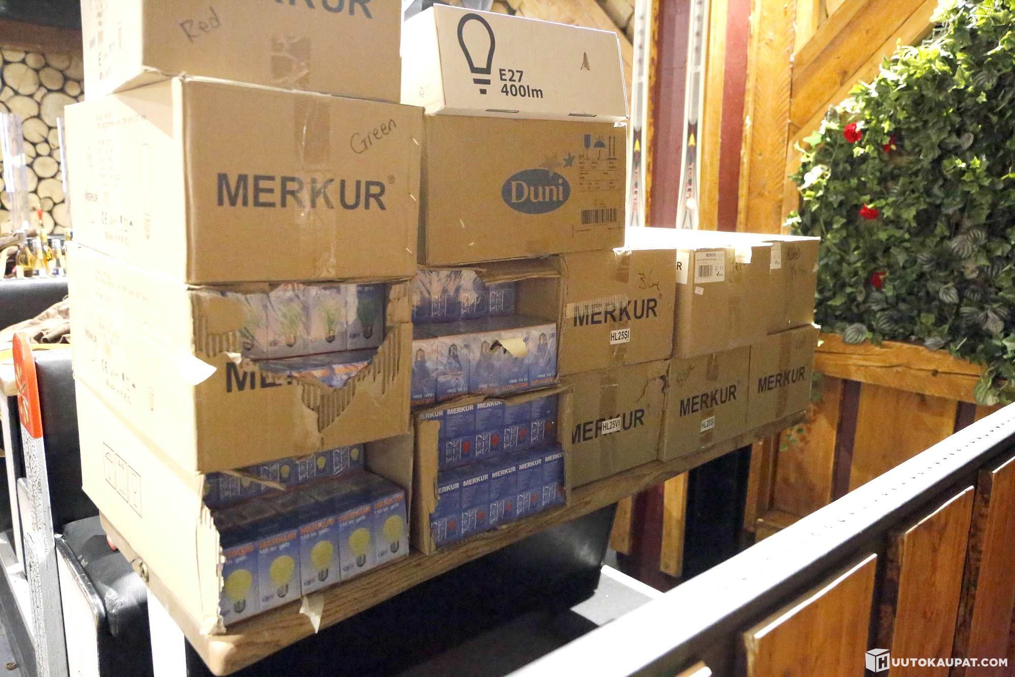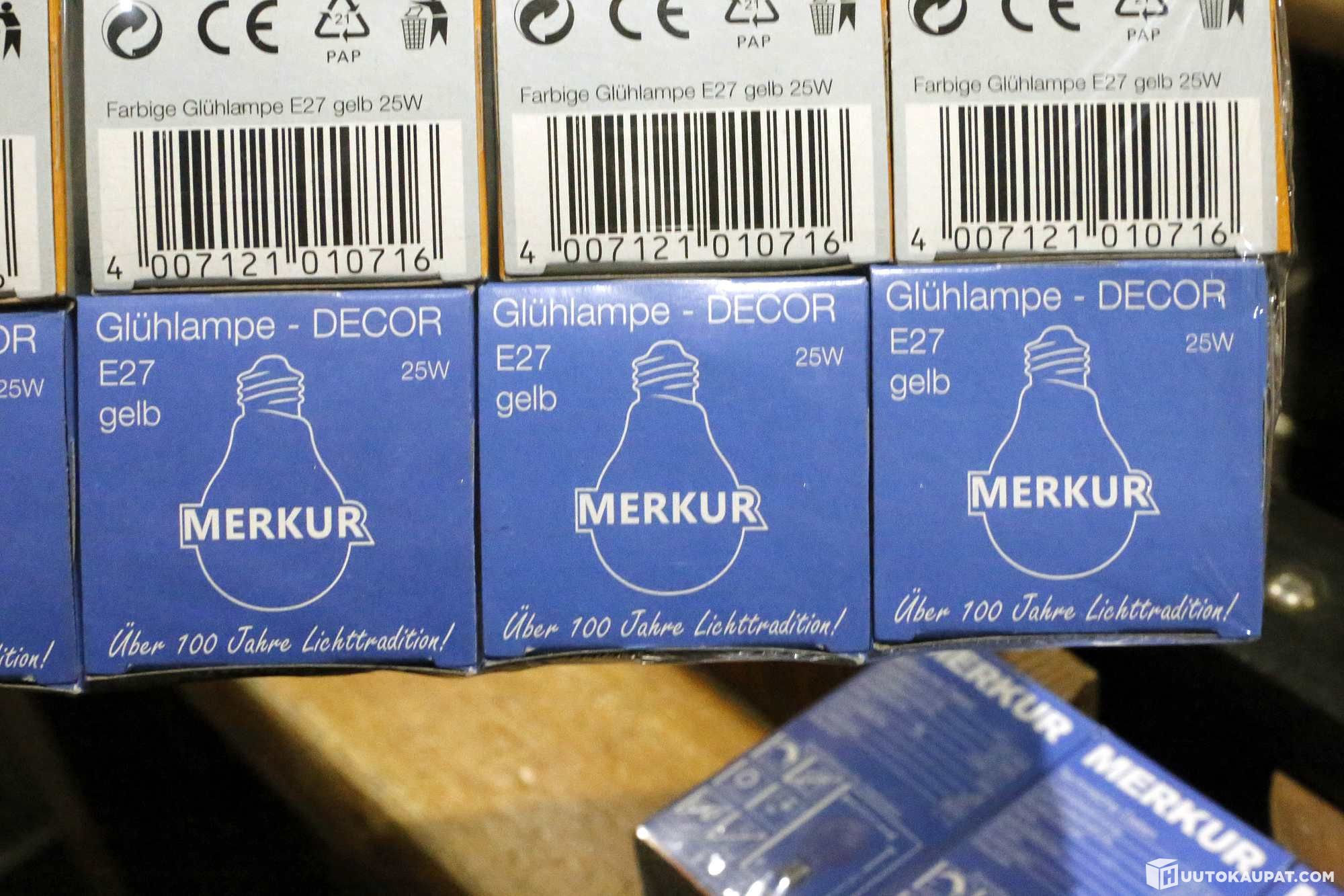 Suuri erä MERKUR värillistä E27 25W hehkulamppuja