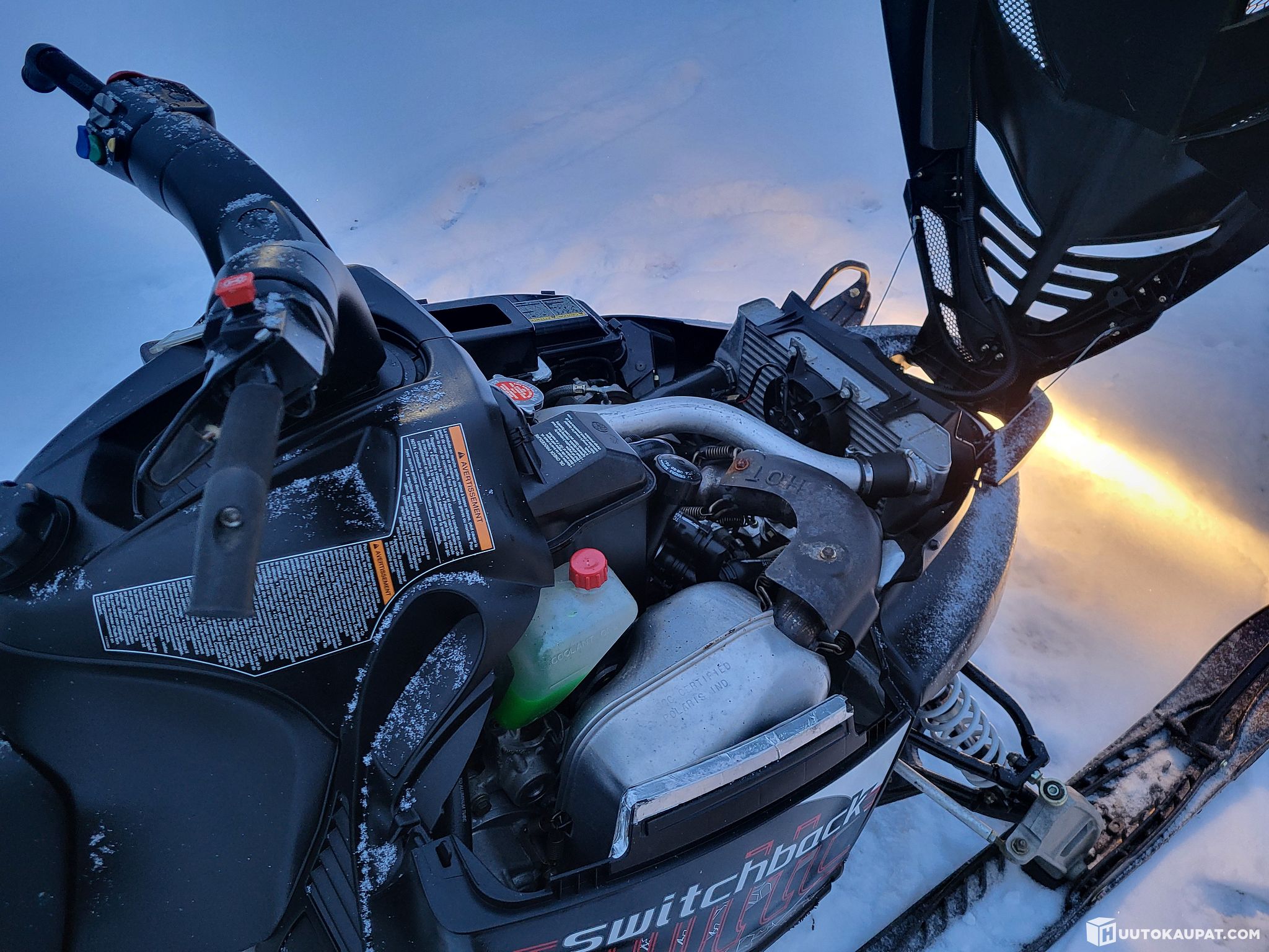 polaris swithback 750 turbo. kelkka on erittäin hieno niinkuin ajomääräkin sanoo 2000km. kaikki toimii ja kelkka on huollettu öljyt ja uusi akku laitettu. nelitahti ei haise ja voimaa ja vääntöä on 99kw. sähkö pakki.s tartti.lämmittimet käsiin hieno peli.