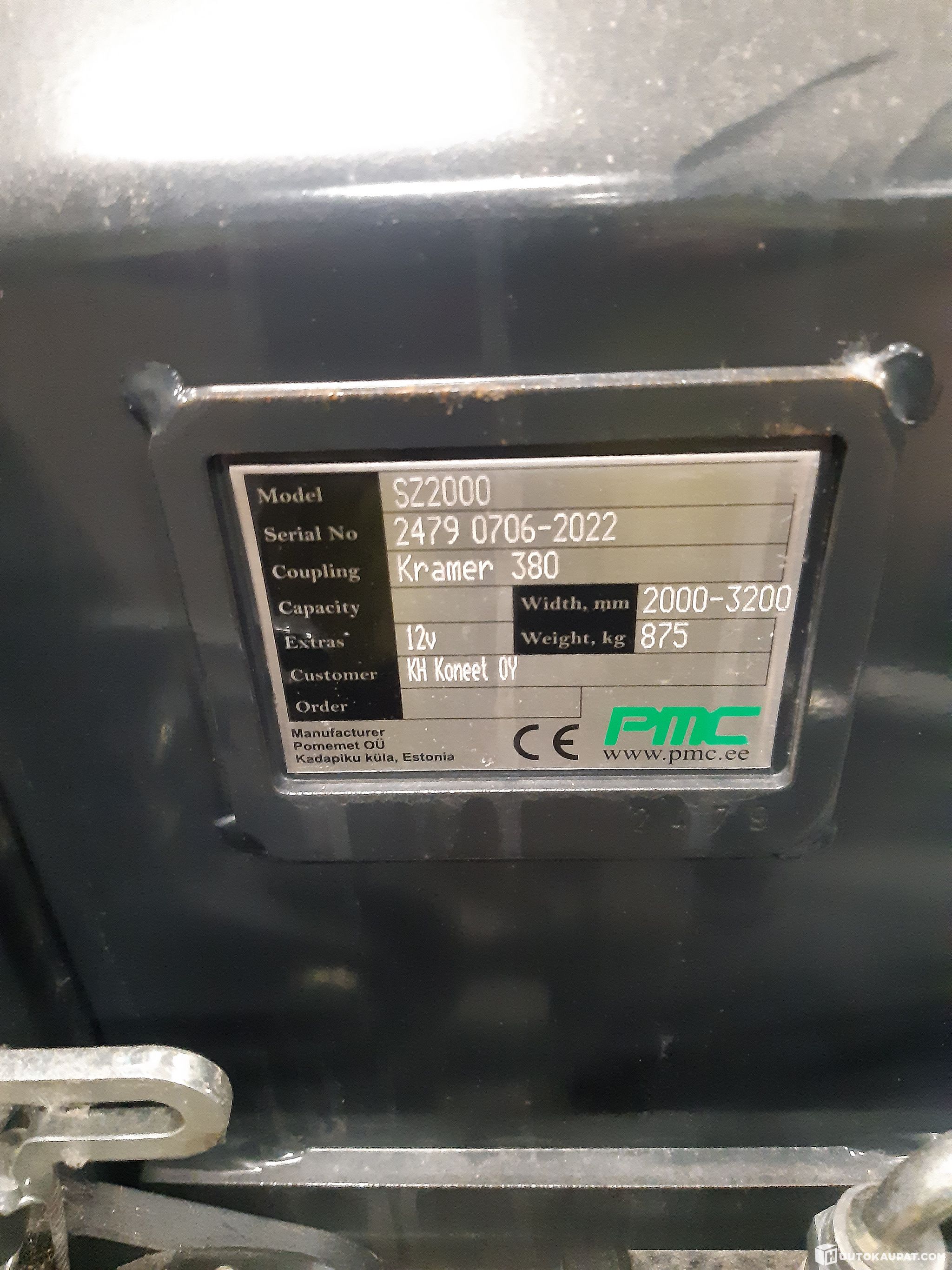 Uusi kääntyvä ja levenevä zoom-aura. Auraa on ainoastaan testattu, muuten se on ollut hallissa trukkilavan päällä säilössä. Leveys 2000-3200mm. Aura on ostettu Kramer 5075 -koneeseen.