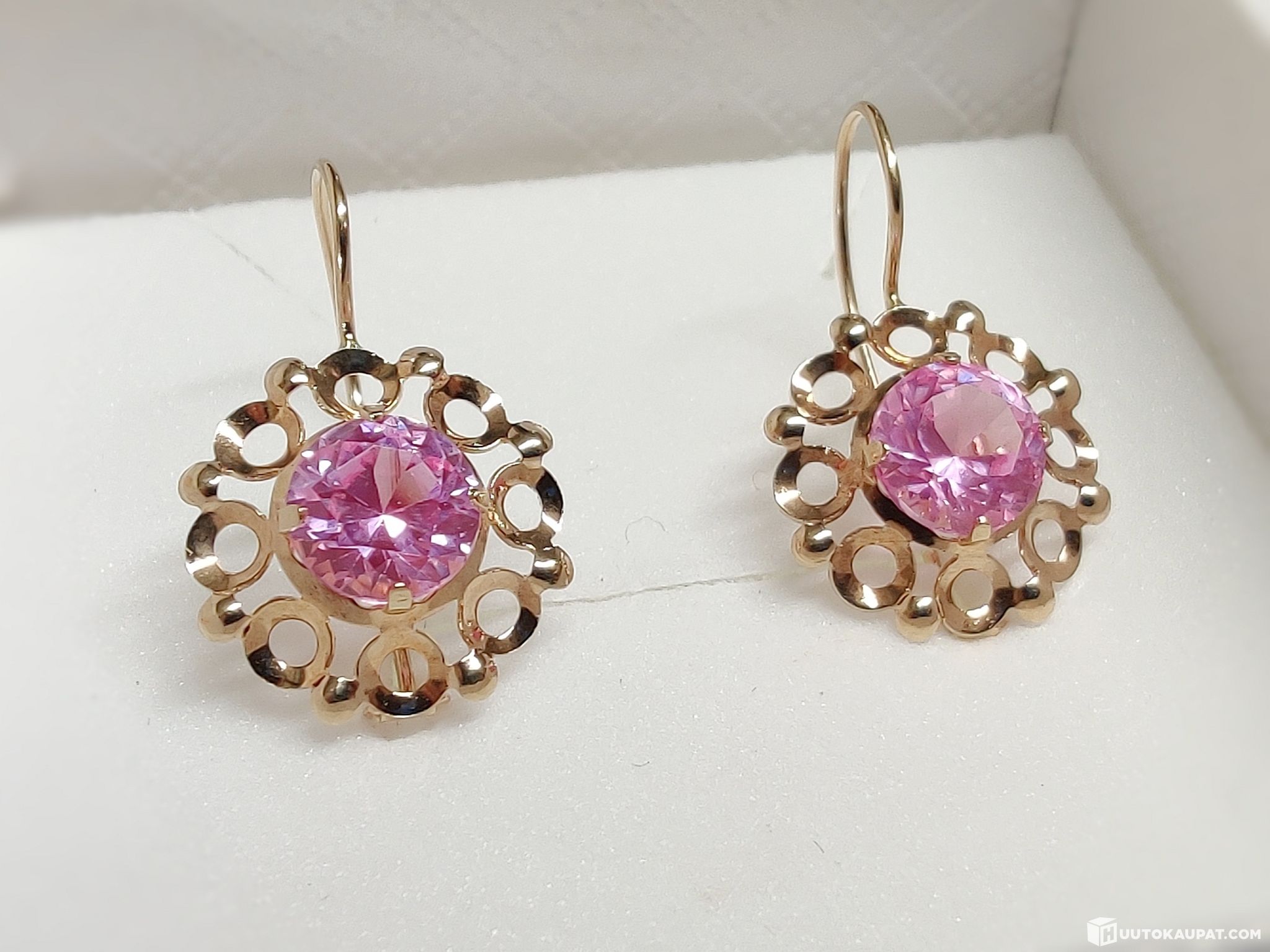 Kauniit vaaleanpunaiset safiirikorvakorut 585 14k kultaa.